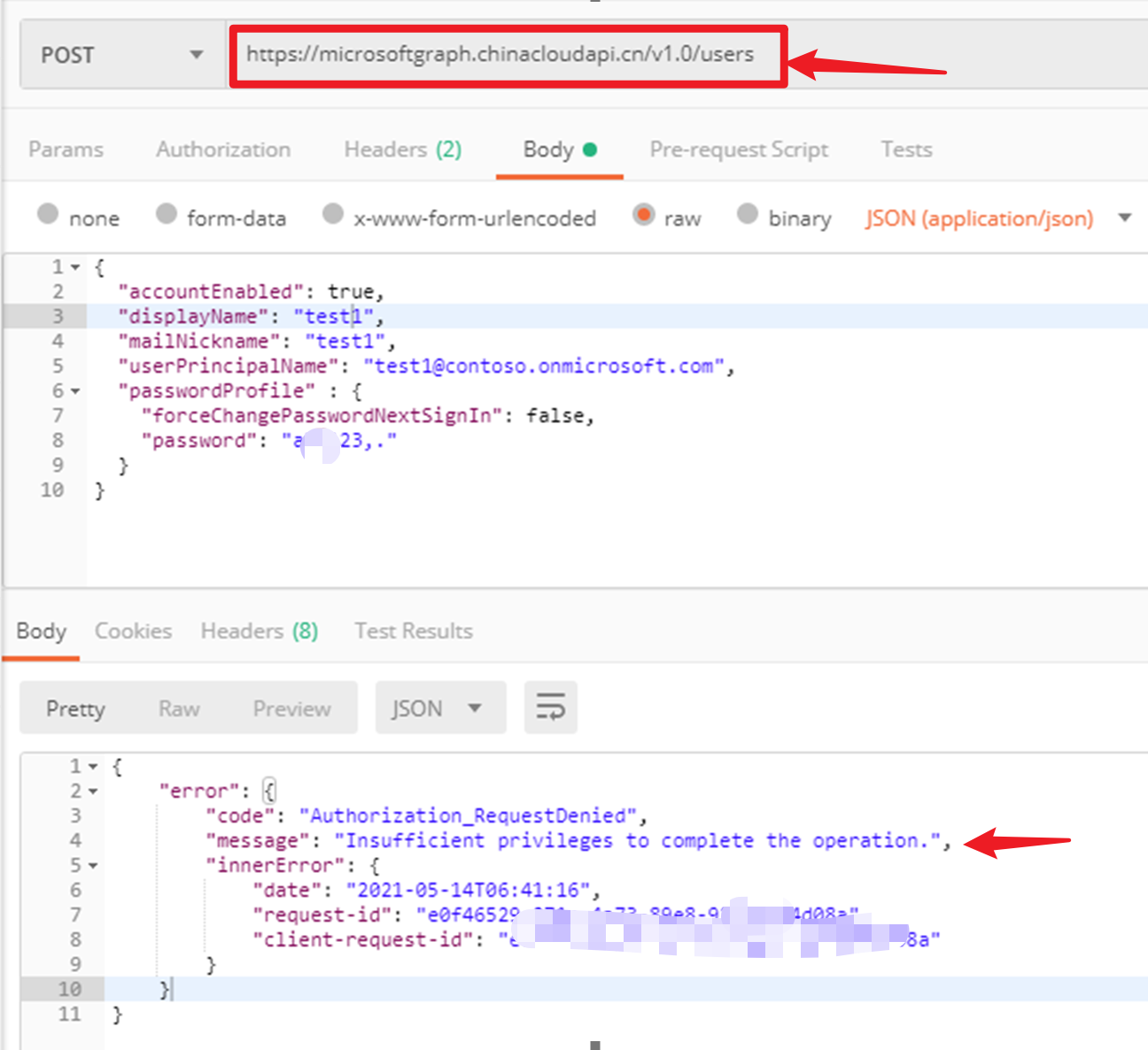 2){ "code": "Authorization_RequestDenied", "message": "Insufficient privileges to complete the operation.", }