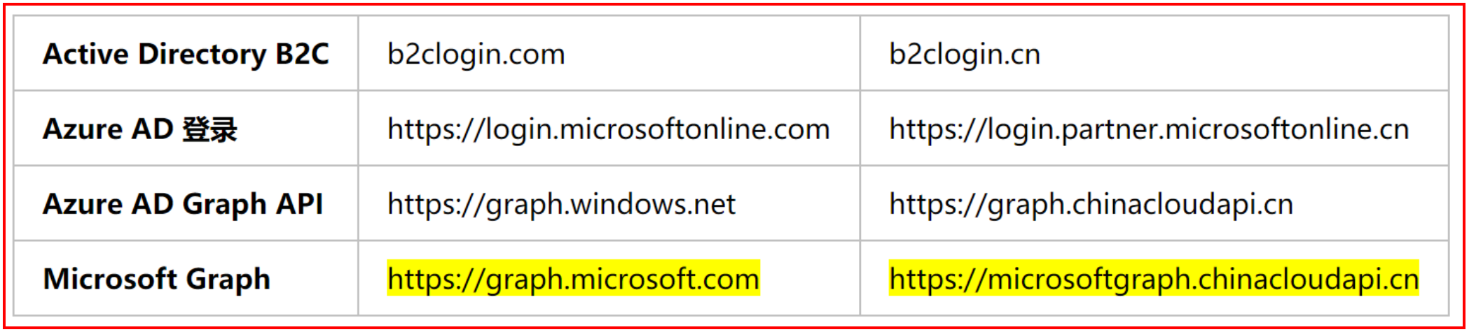 检查 Azure 中的终结点:https://docs.azure.cn/zh-cn/articles/guidance/developerdifferences?toc=%2fguides%2fdeveloper%2ftoc.json#check-endpoints-in-azure