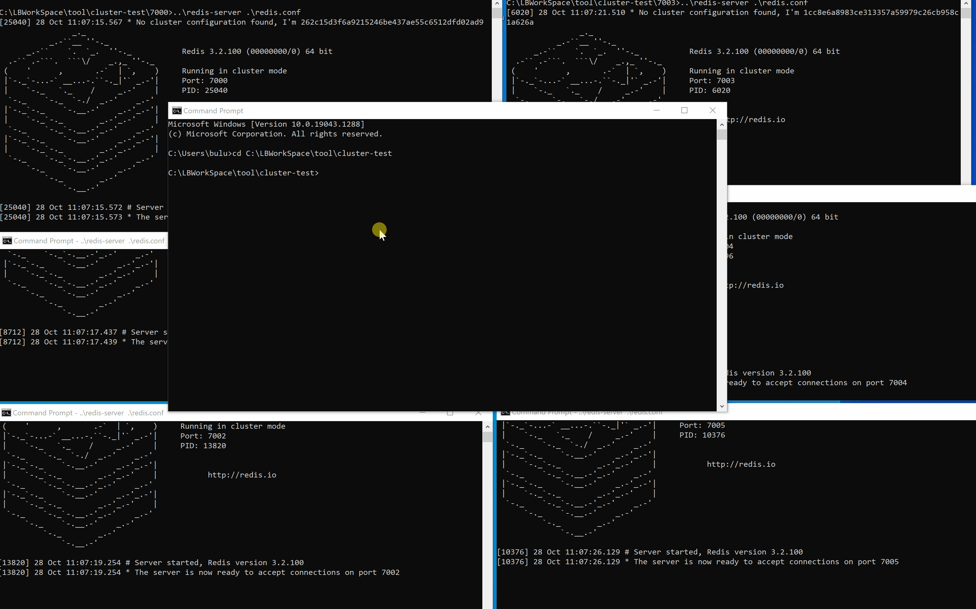 注:需要在6个CMD中对7000,7001,7002,7003,7004,7005 启动Reids Server
