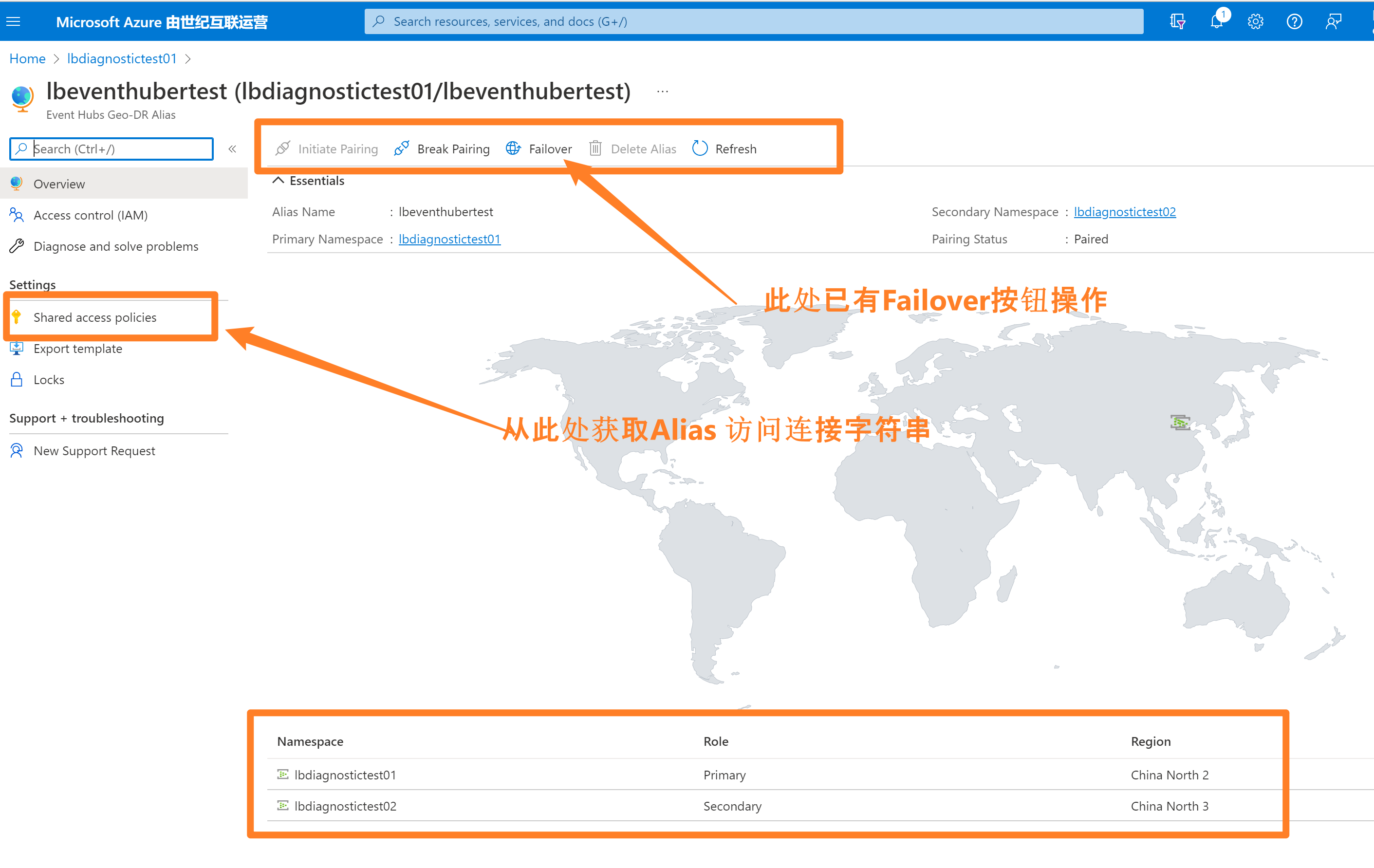 这一步的操作步骤, 执行简单,根据页面指引,一步一步完成即可。官网步骤:https://docs.azure.cn/zh-cn/event-hubs/event-hubs-geo-dr?tabs=portal#setup