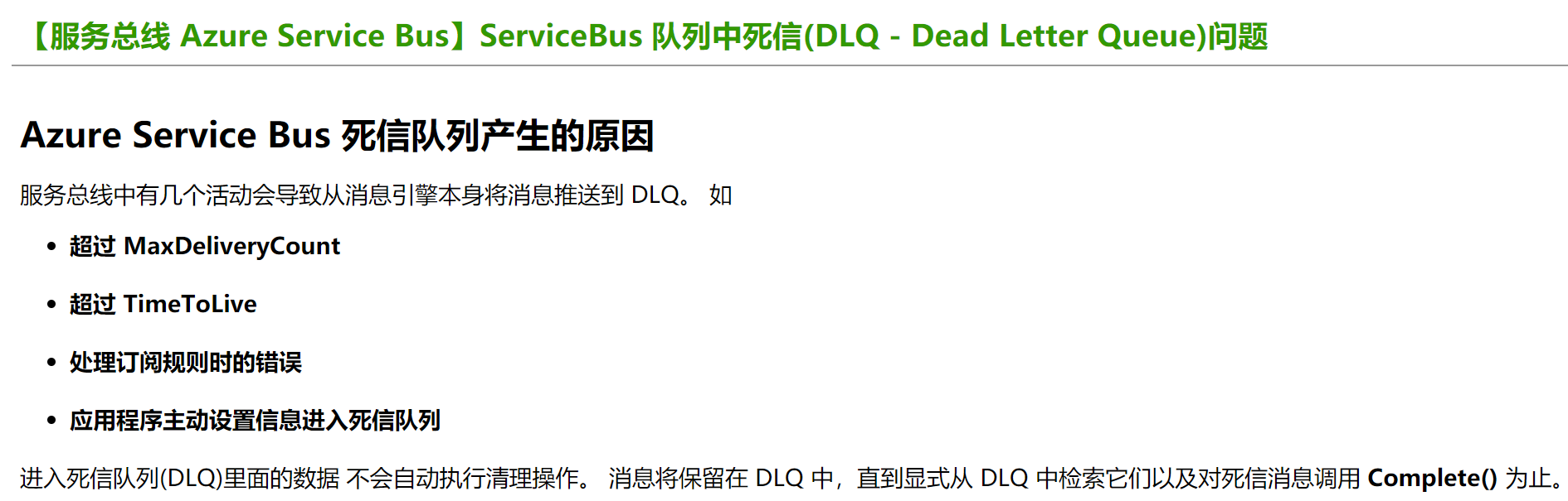 在博文ServiceBus 队列中死信(DLQ - Dead Letter Queue)问题一文中,介绍了服务总线产生私信的原因及可以通过代码的方式来清楚私信队列中的消息,避免长期占用空间(因为私信中的消息不会自动清理)