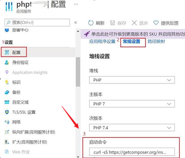 但是由于重启 WebApp后,或由于PaaS服务的性质,Host服务的实例发生切换,这些配置就会丢失。所以需要把这2条命令保存到 Web App 的启动命令中,如下图: