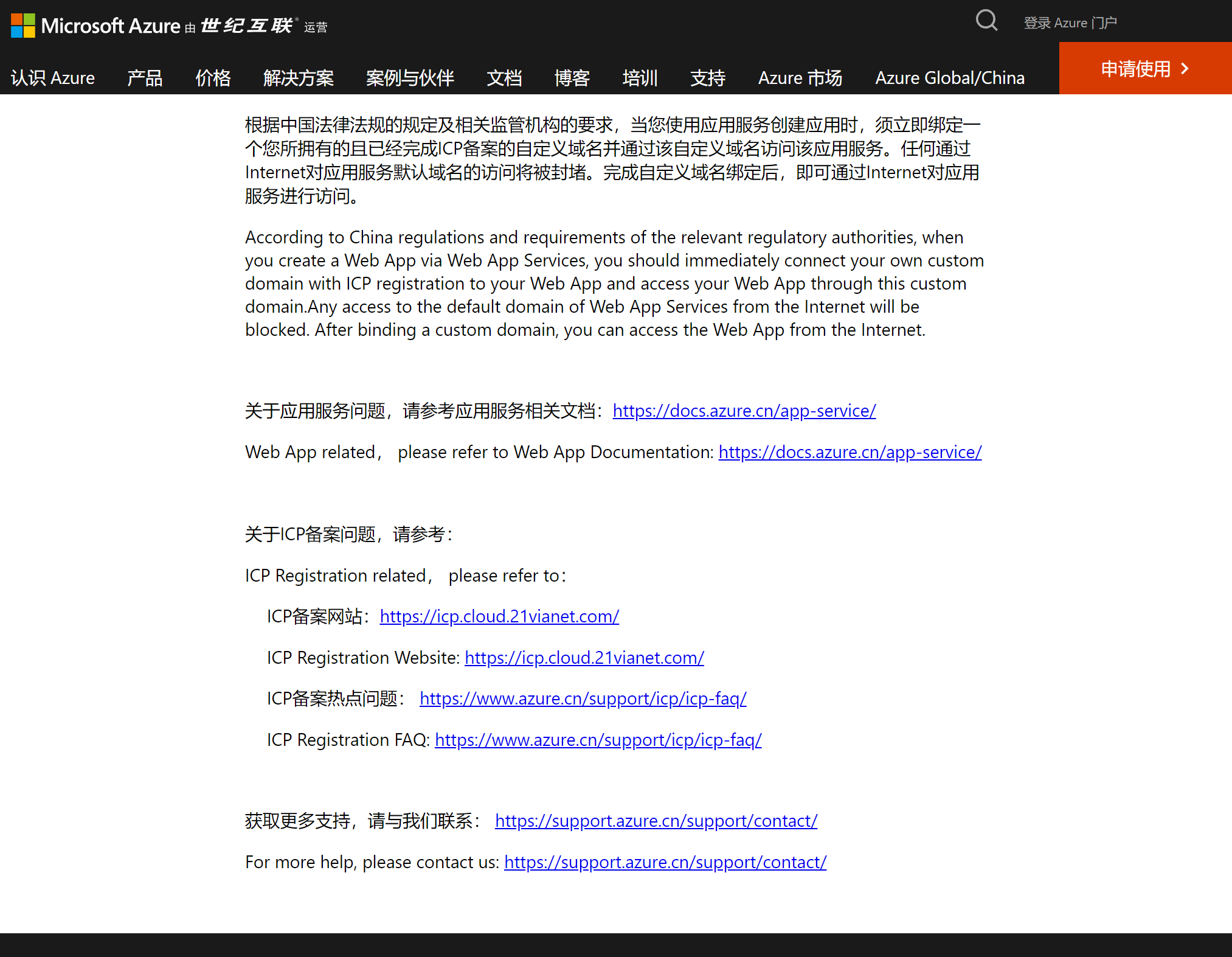 那么, App Service在不配置自定义域名的情况下如何使用呢?