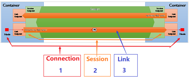 EventHub Client使用AMQP协议的连接创建与关闭的过程: 它涉及到三个主要的部分:connection,session和link