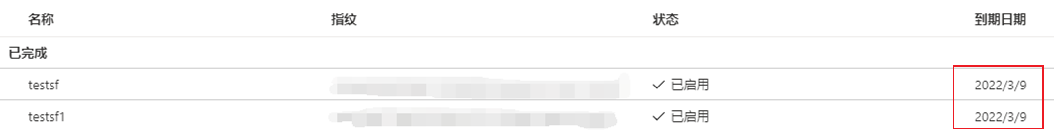 根据次要证书可以登录成功,主要证书确不可以的情况,进一步的调研和测试,得出Azure Service Fabrics SDK 的默认证书加载行为是部署和使用过期日期最远的已定义证书,而不管其主要或次要配置定义如何。以下的测试为两个证书到期时间一样,使用PowerShell连接的时候也是会选择次要证书进行连接。如果需要让Service Fabrics使用主要证书,则可以在创建证书的时候,让主要证书的过期时间长一些。