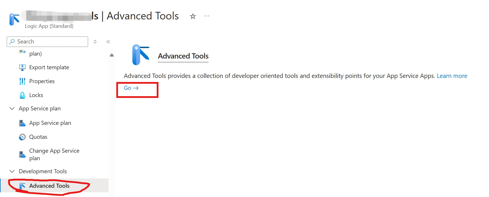 1:Logic App --> Development Tools --> Advanced Tools, 点击Go