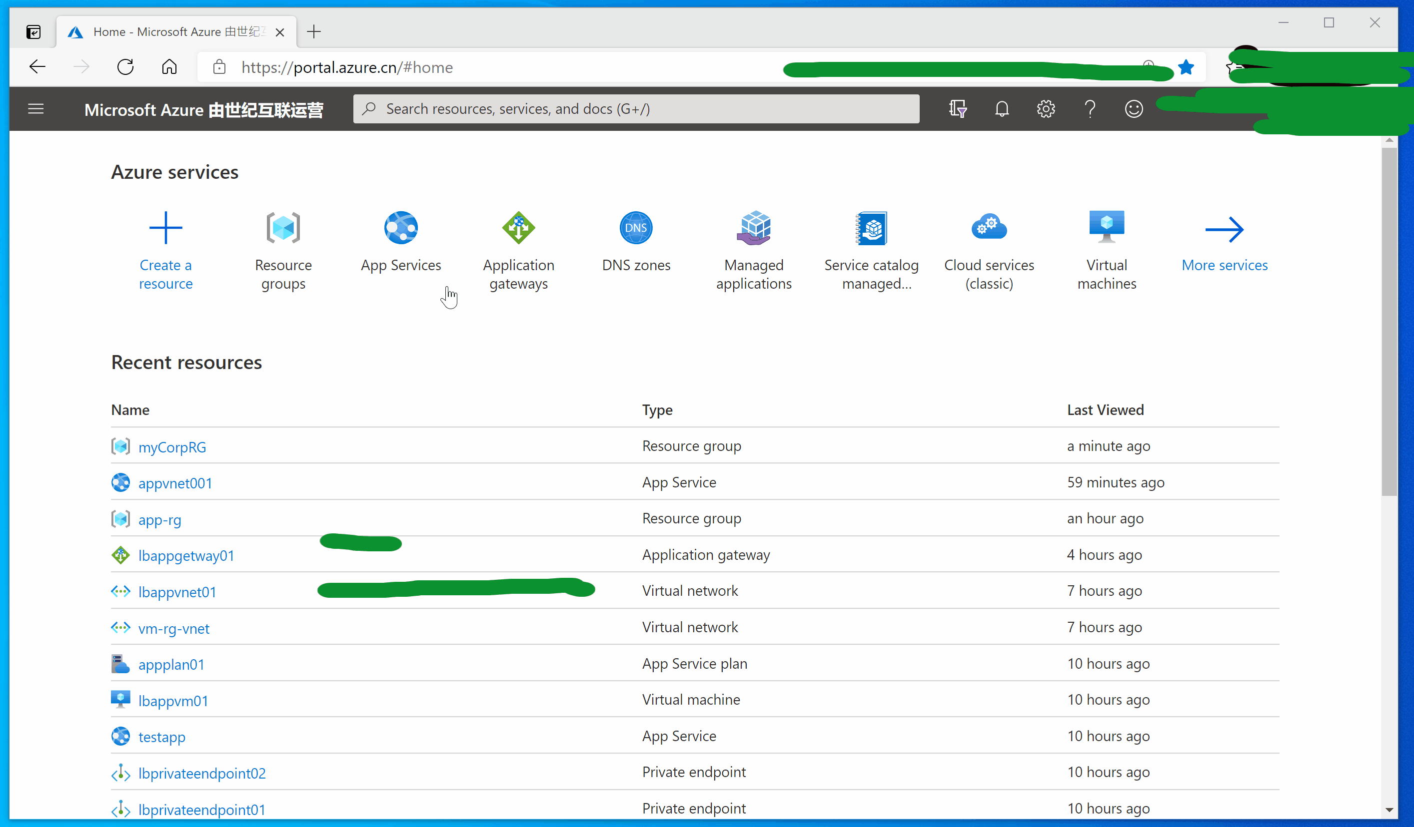 登录Azure门户(中国区): https://portal.azure.cn/