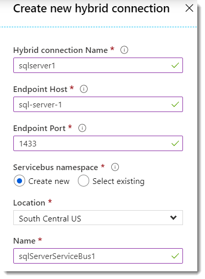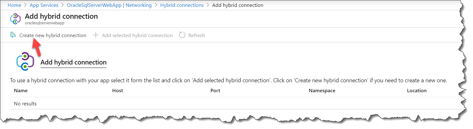 Add a new hybrid connection for the SQL Server: