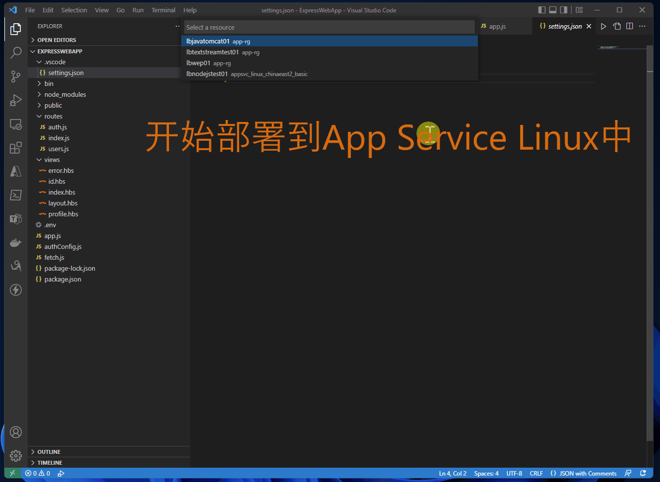 第二步:部署到App Service For Linux环境并配置AAD参数