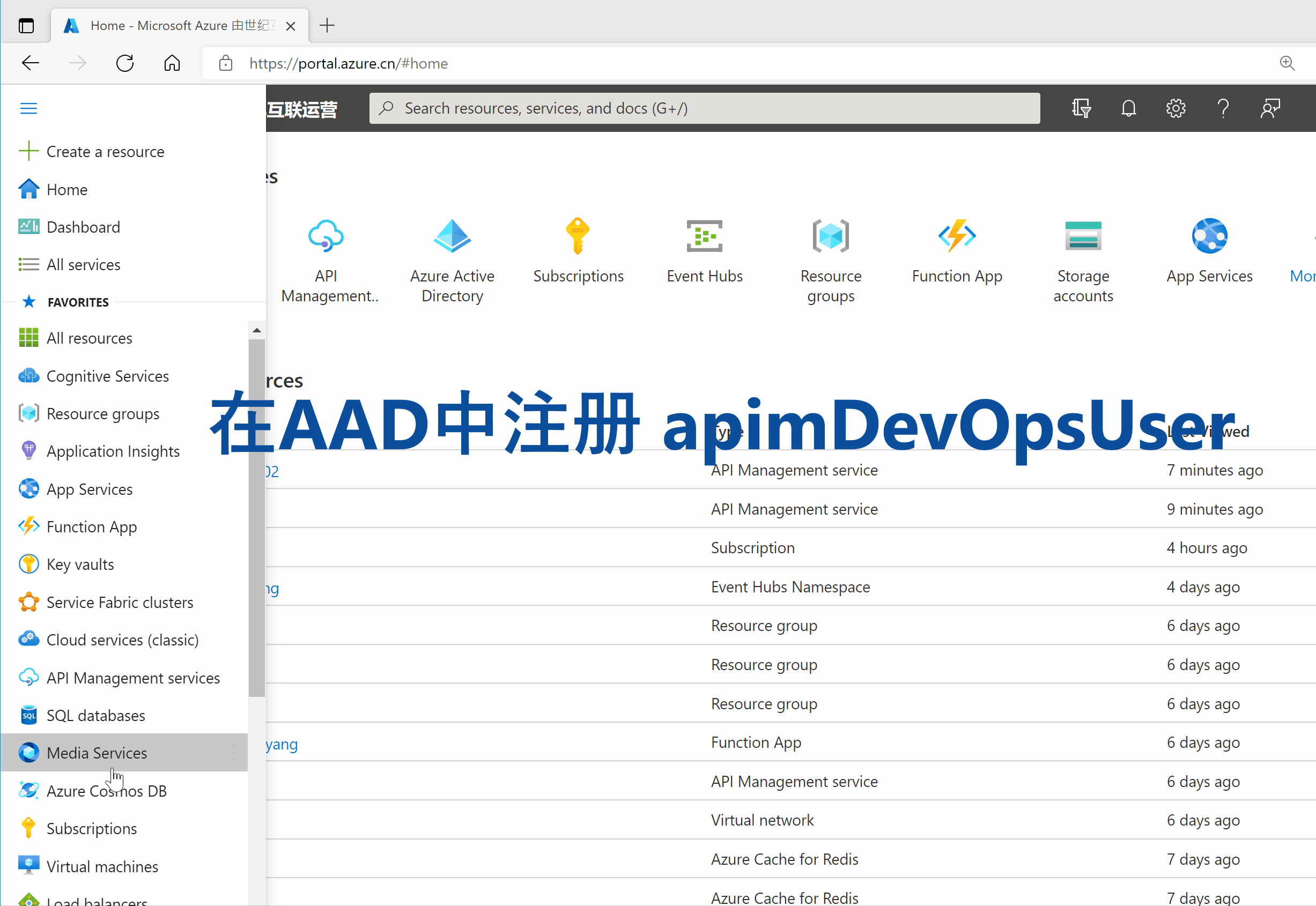 1)登录Azure门户,打开API Management服务并选中其中需要操作的APIM对象。