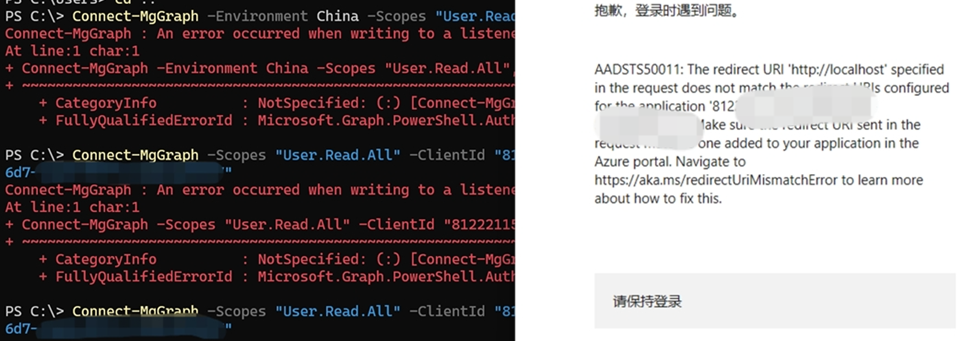 使用Microsoft Graph PowerShell SDK来获取登录中国区的时候,会出现Global Azure不会遇见的错误情况。