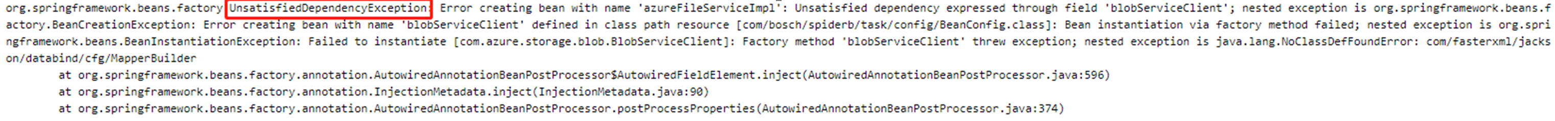 错误一:Org.springframework.beans.factory UnsatisfiedDependencyException: Error creating bean with name 'azureFileServiceImpl': Unsatisfied dependency expressed through field 'blobServiceClient'.