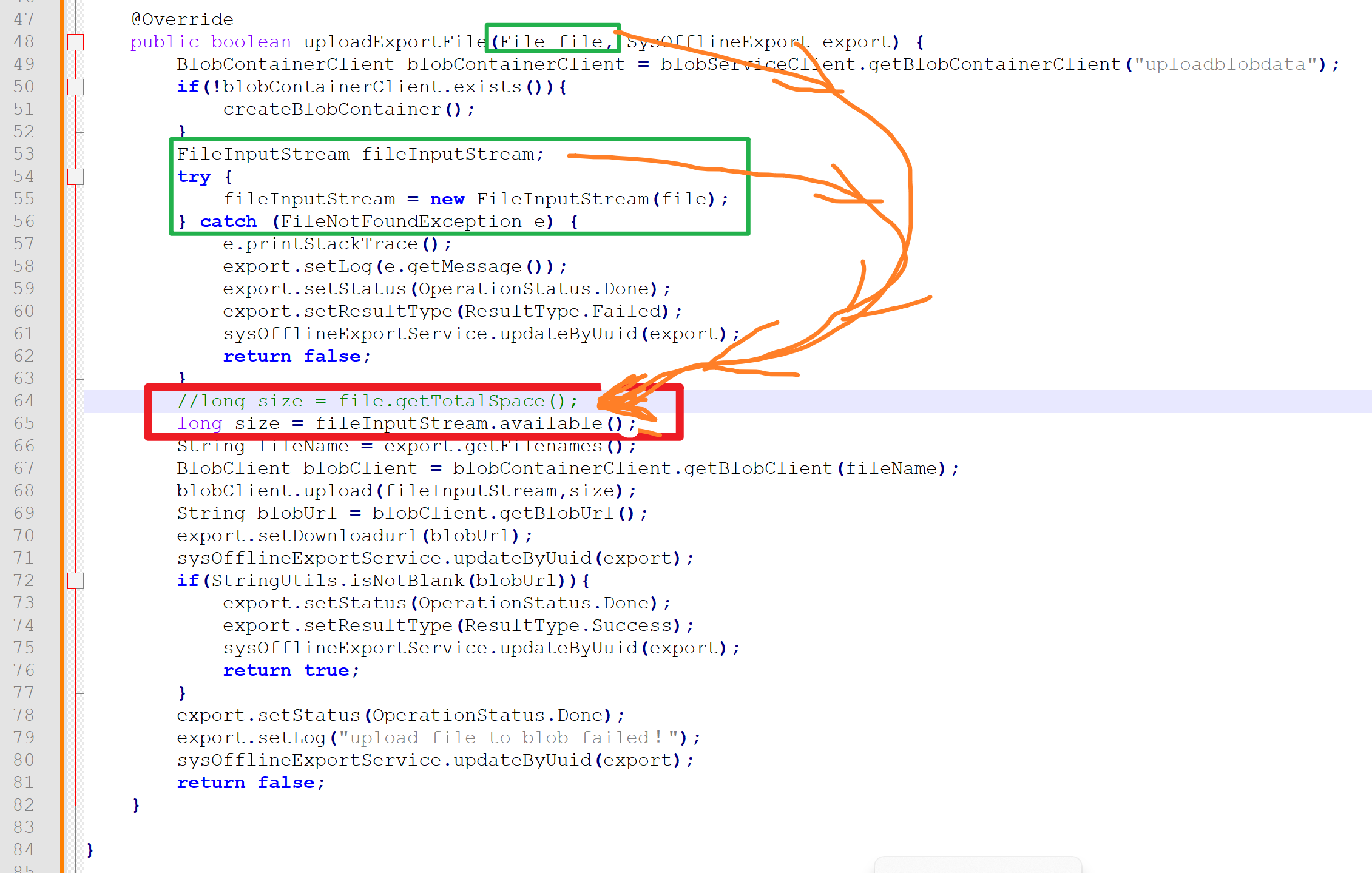 经过对代码中涉及到 File Length, Size等代码的调试后,发现问题所在:Azure storage Blob 由12.4.0升级到12.13.0后,获取文件的 length 发生了变化。