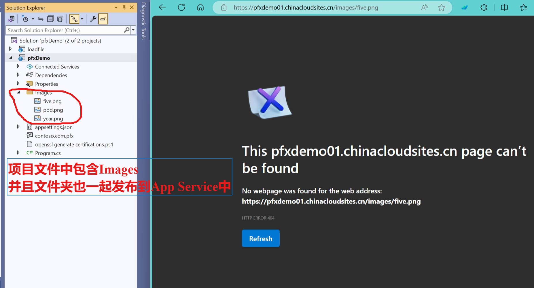 使用.NET 8开发应用,部署到Azure App Service后,需要直接访问一些静态图片/视频文件,但是直接通过相对路径获取文件时,遇见404错误........