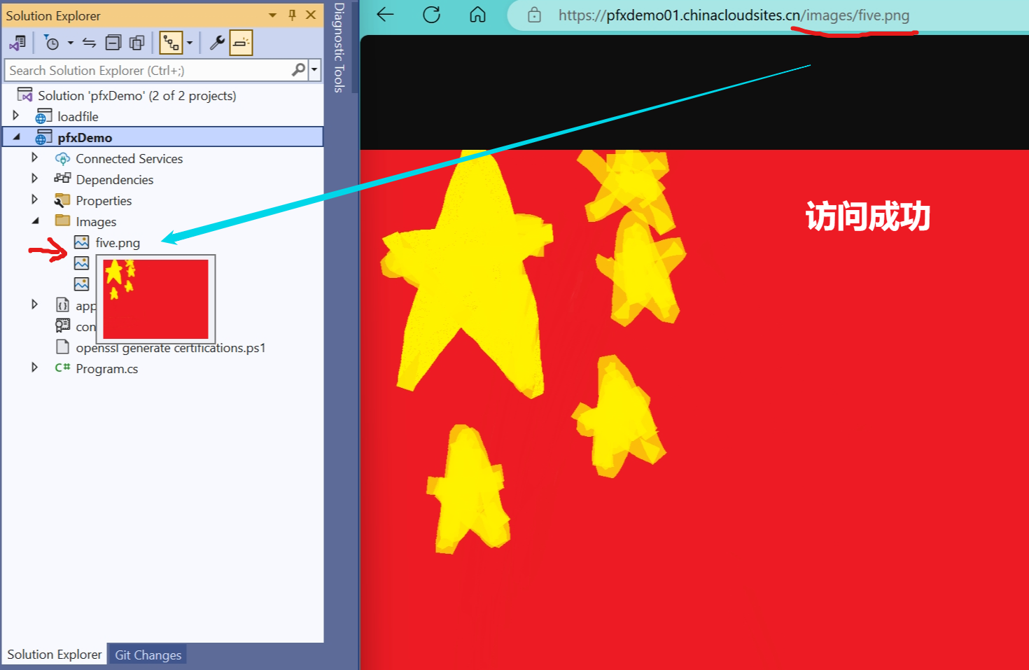 当把 UseStaticFiles 添加后,部署到App Service后,直接访问静态图片路径,成功返回图片。