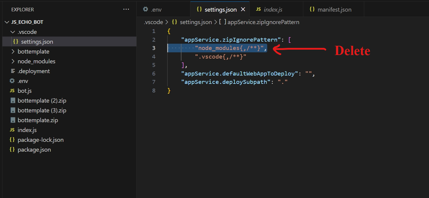 8:21:29 PM lbbotbackendapp01: Starting deployment... 8:21:29 PM lbbotbackendapp01: Creating zip package... 8:21:30 PM lbbotbackendapp01: Ignoring files from "appService.zipIgnorePattern" "node_modules{,/}" ".vscode{,/}" 8:21:31 PM lbbotbackendapp01: Adding 13 files to zip package...