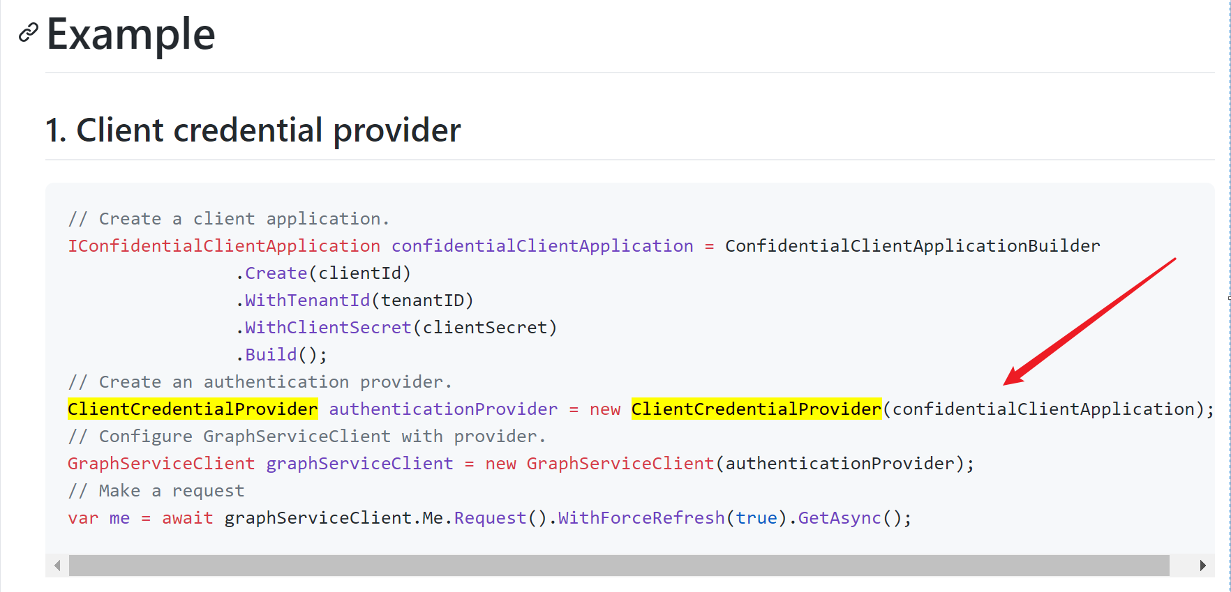 // Initialize the client credential auth provider