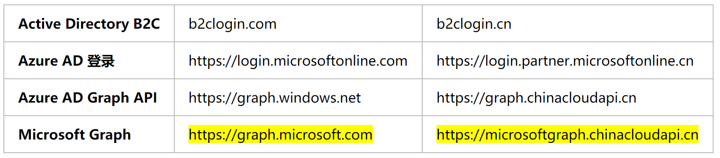 由于中国区的Azure是独立的运行环境,所以与Global不一样。在终结点方面表现最为明显,如在使用China Azure的开发中,需要特别注意终结点部分: