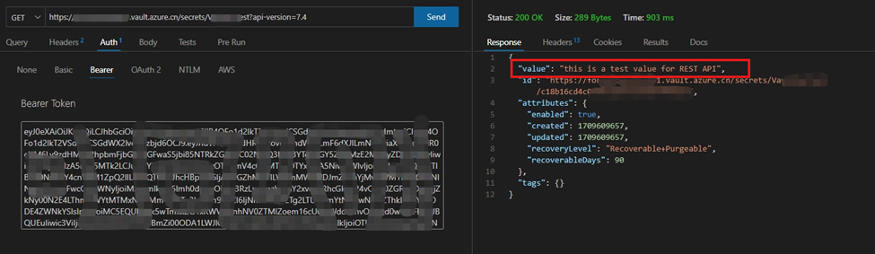 GET URL: https://<YourKeyVault>.vault.azure.cn/secrets/<SecretName>?api-version=7.4