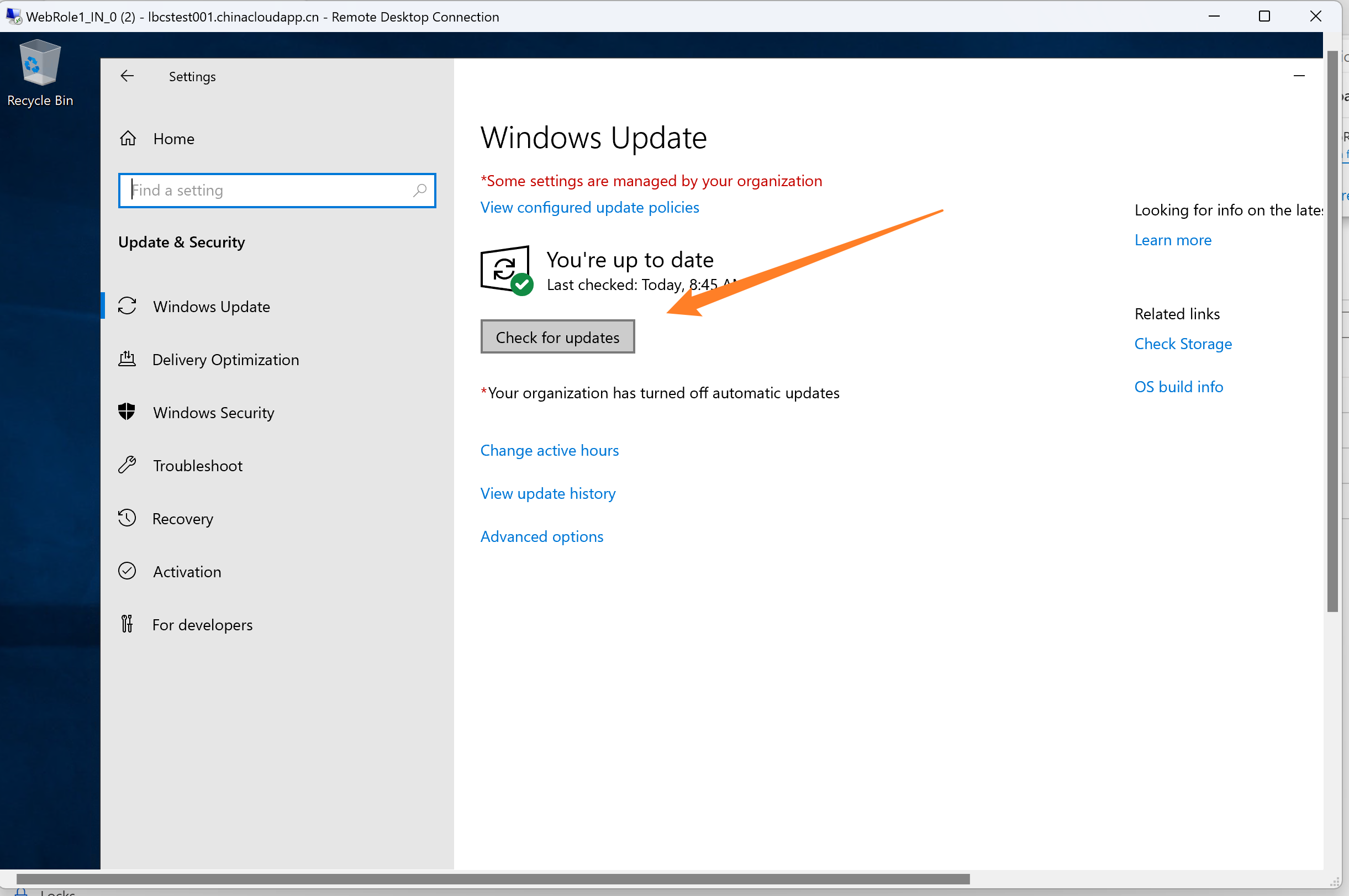 3)RDP到实例后,查看Setting --> Windows Update --> View Update History