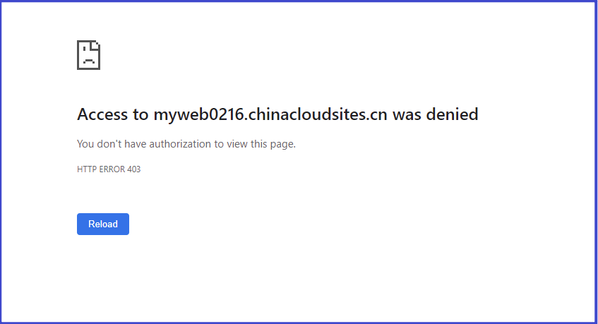 在App Service中,客户端访问不携带证书时的错误页面为