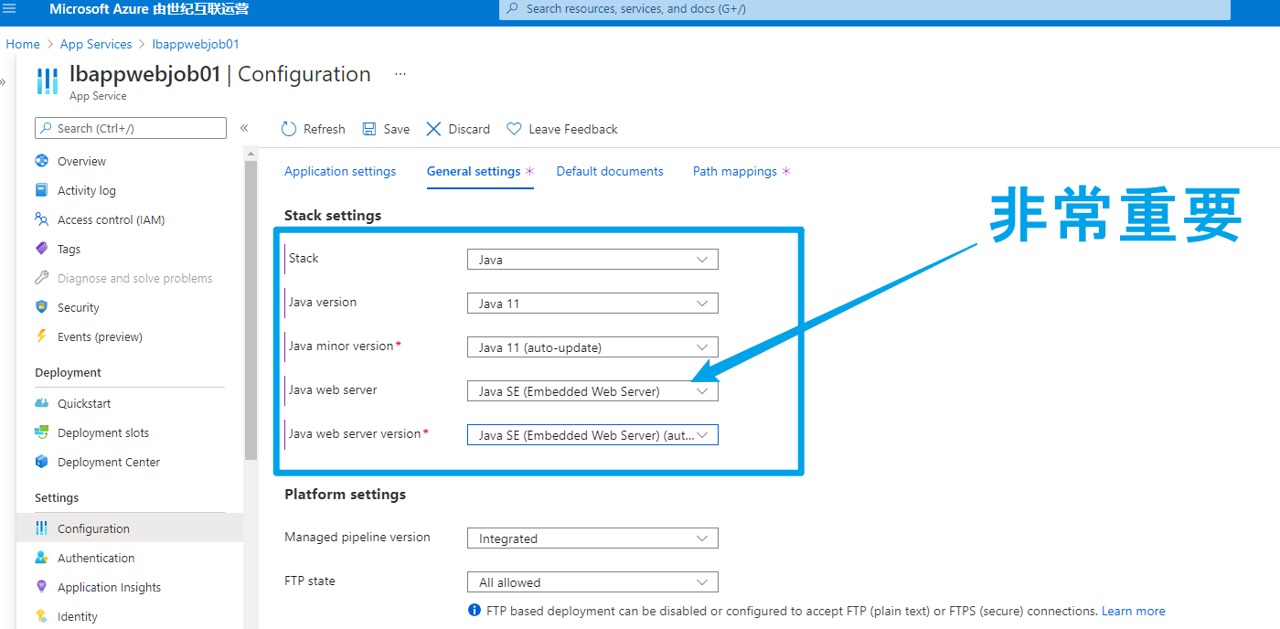 1)将App Service runtime stack配置为Java -> Java SE (Embedded Web Server)