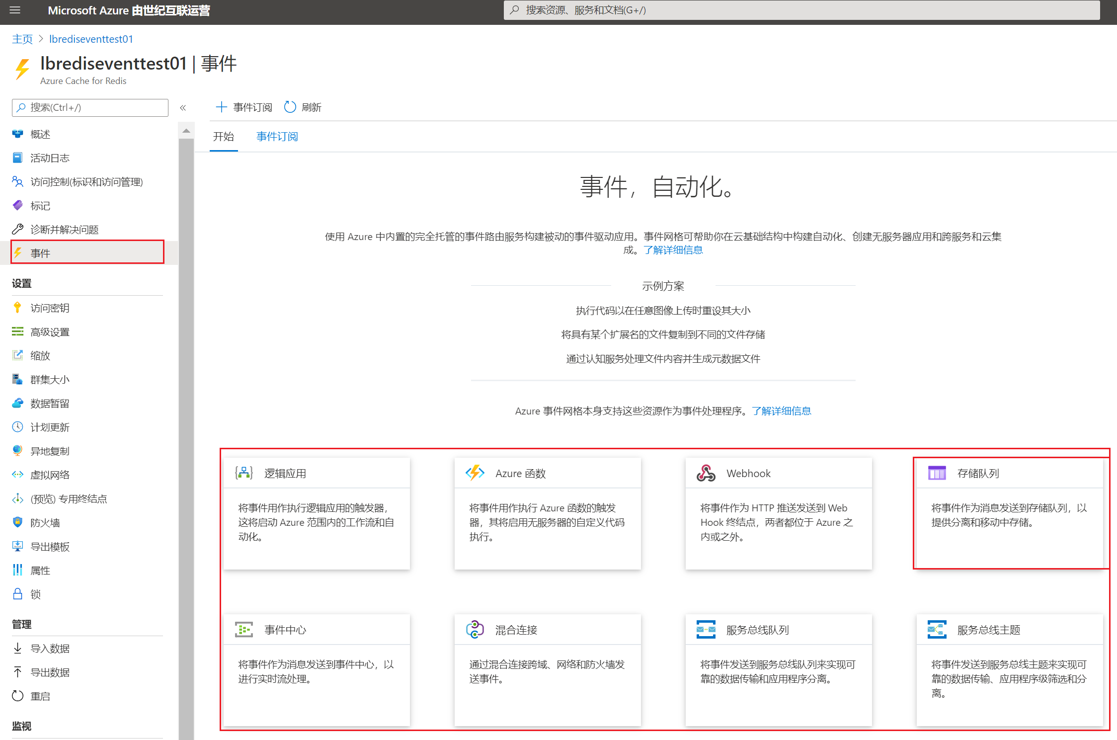 一:创建Redis的Event Grid订阅,并配置存储队列作为接收端
