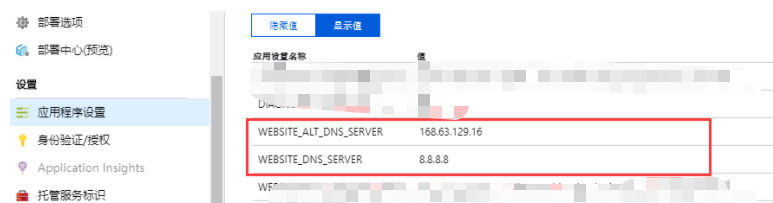 | WEBSITE_ALT_DNS_SERVER | 168.63.129.16 (Azure 域名解析服务器 IP 地址) |