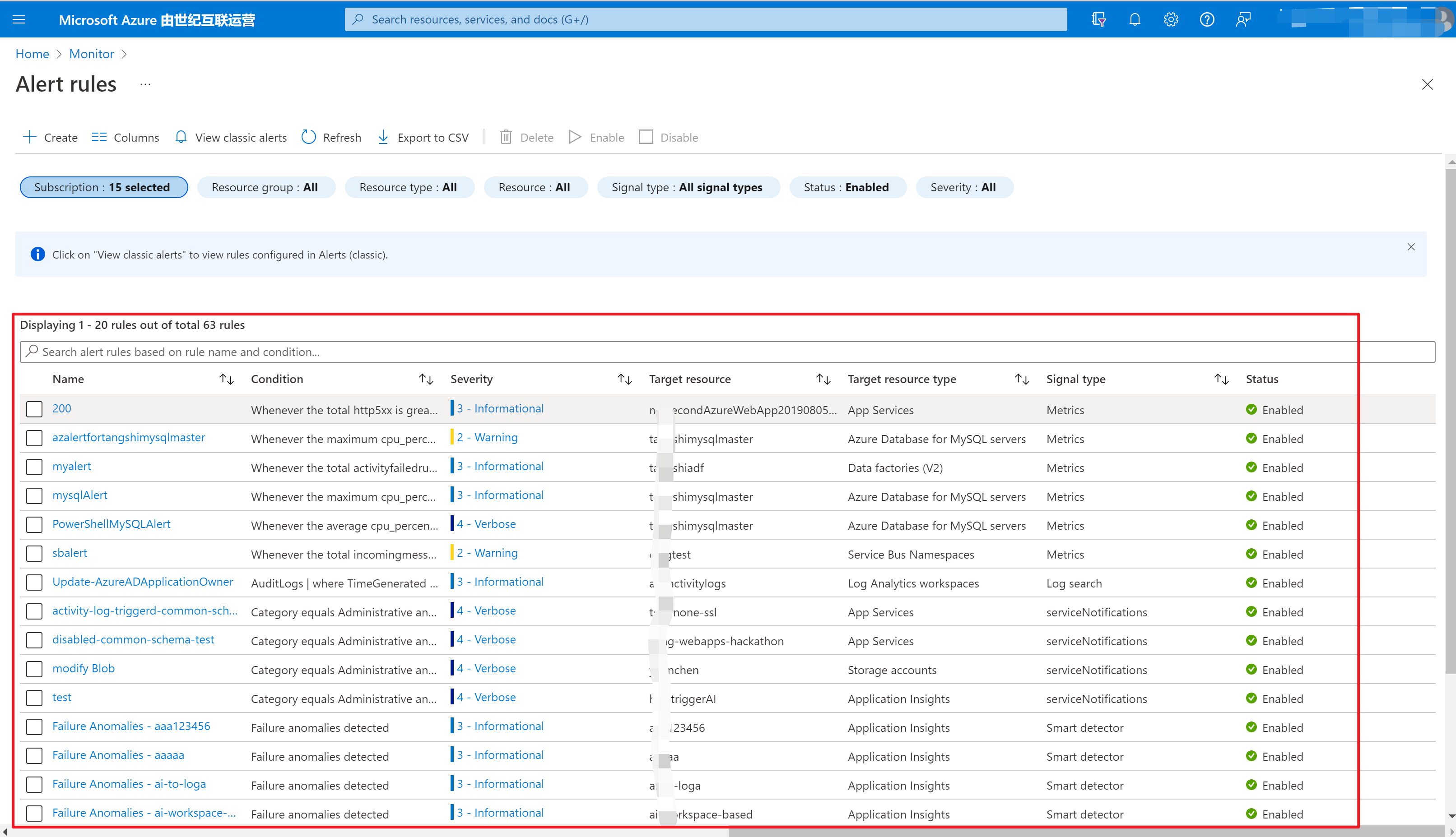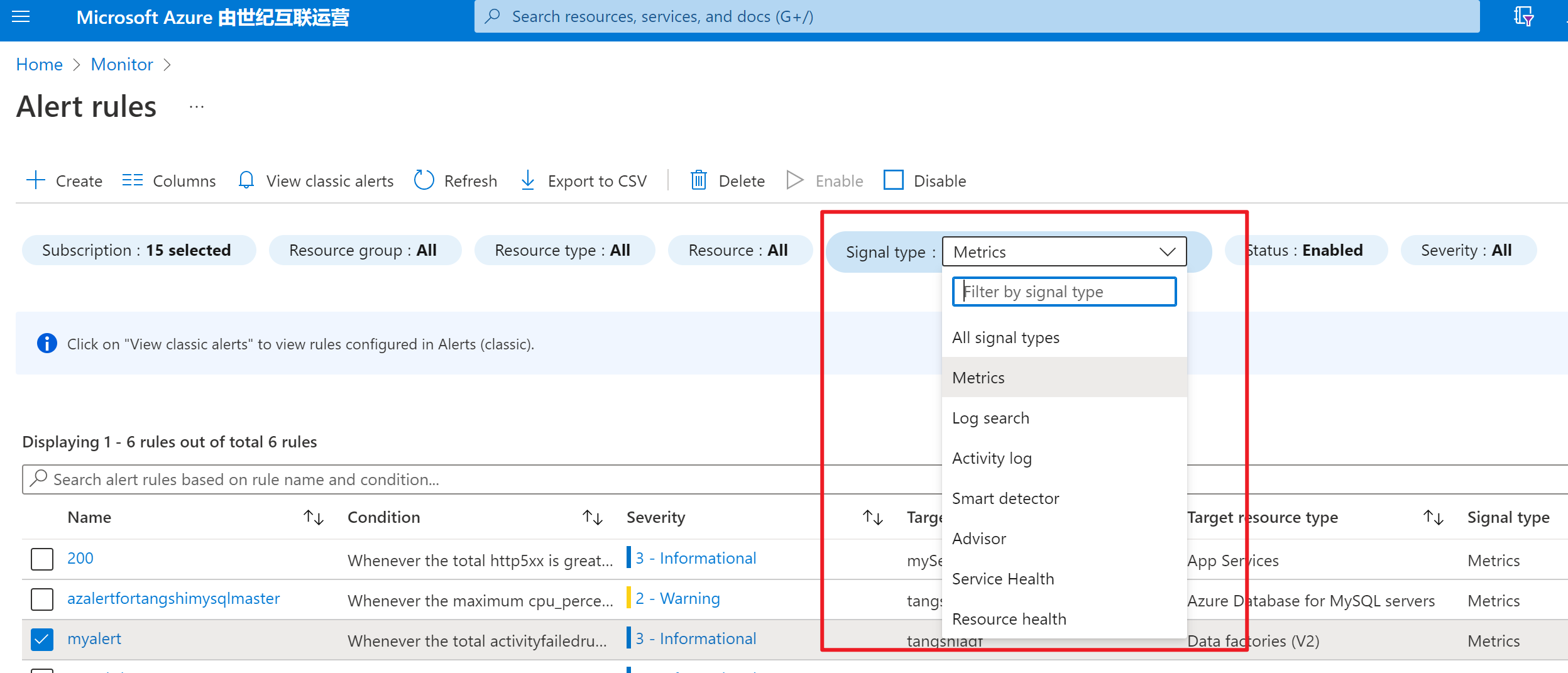 1) 可以在Alert Rule页面中发现需要查看Rule的Type,页面上可以过滤的值有: Metrics,Activity Log, Application Insights, Log ...