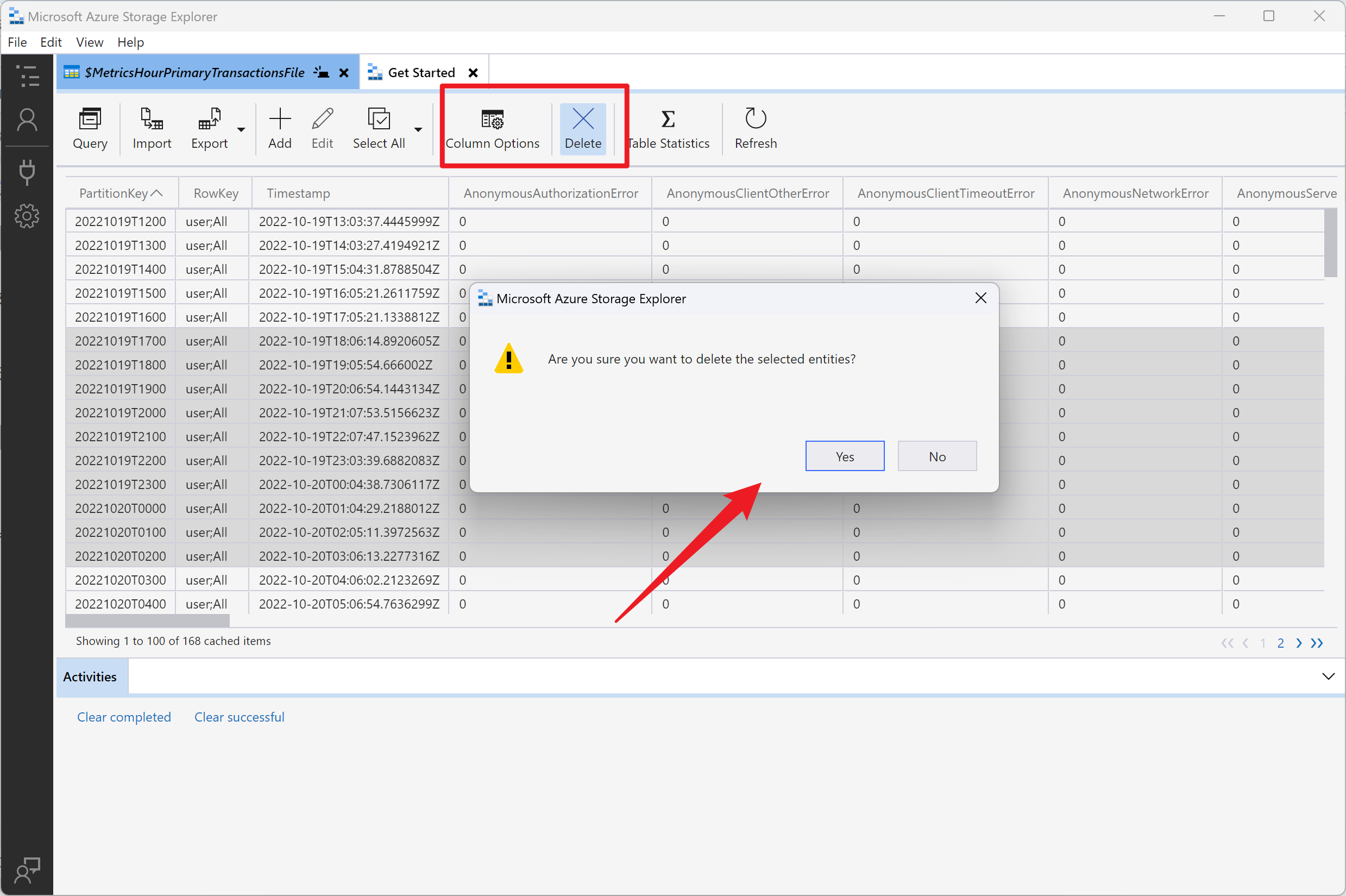 (可以在红色箭头处 forEach 中调用 tableClient.deleteEntity(tableEntity) 来删除它)