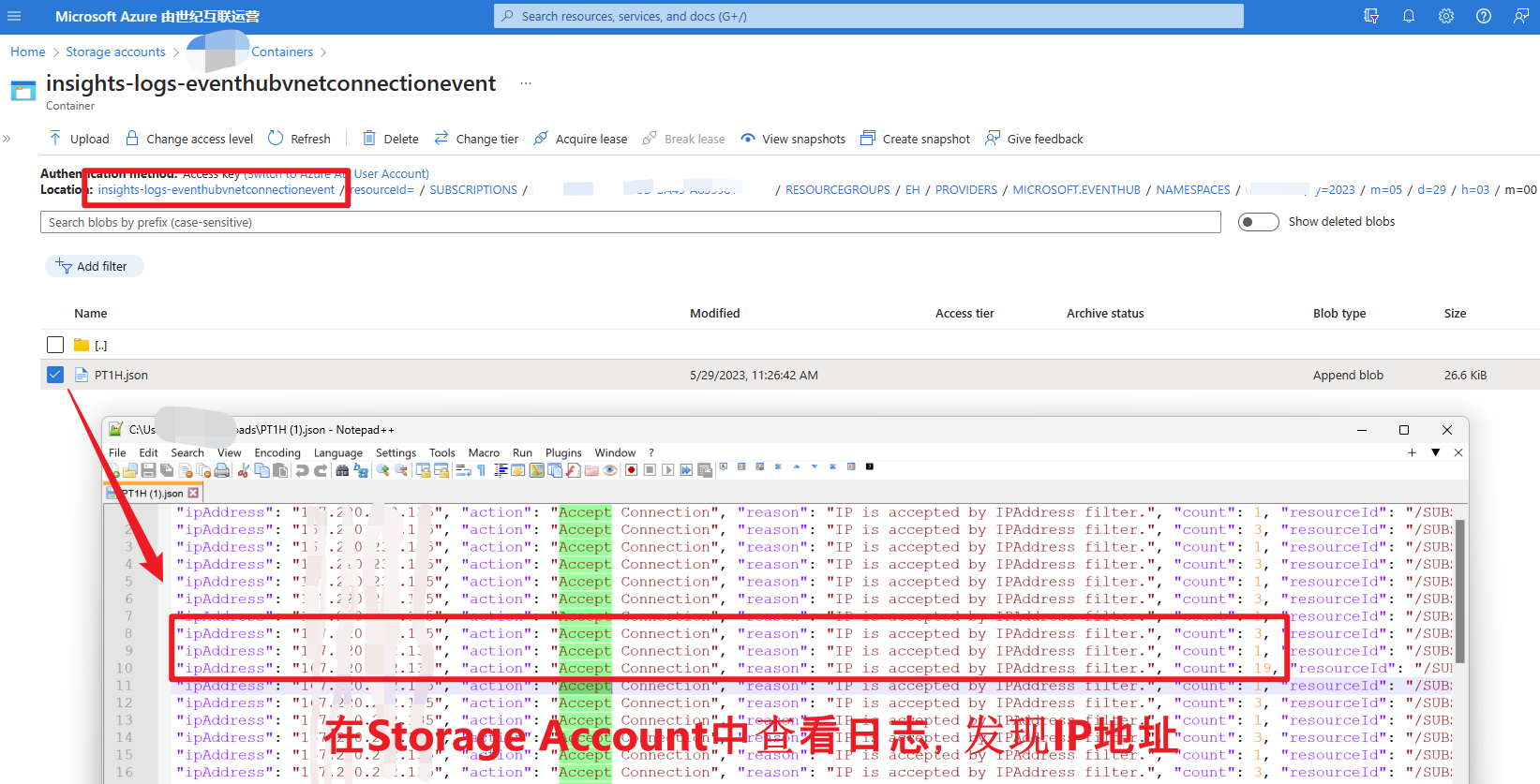 第三步:查看EventHubVNetConnectionEvent中日志内容