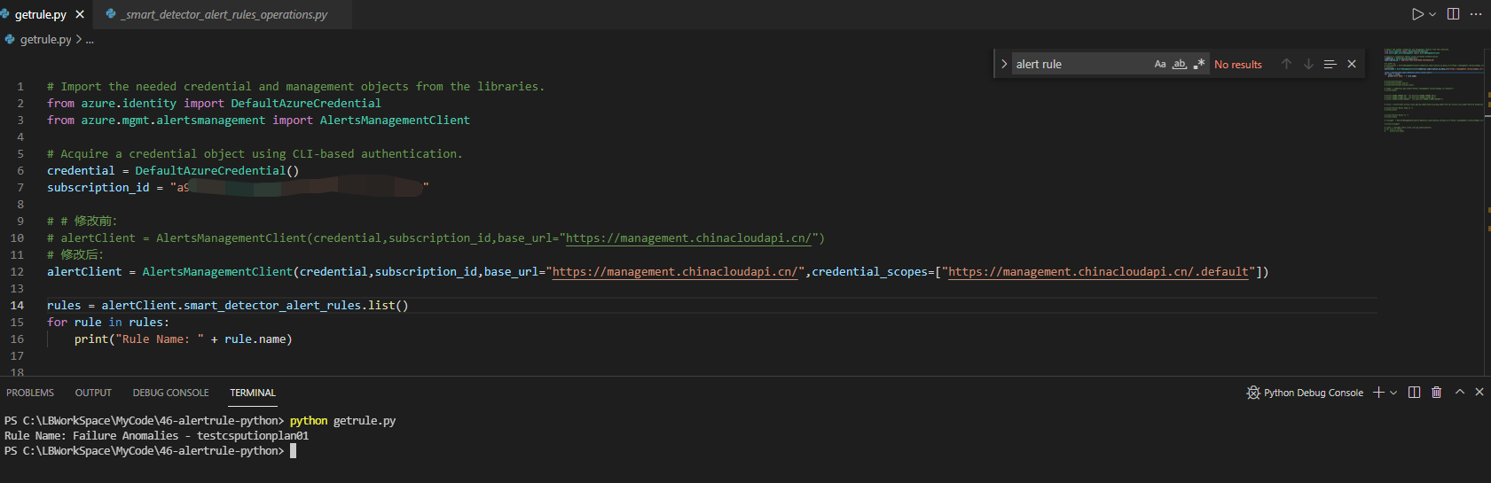 `PS C:\LBWorkSpace\MyCode\46-alertrule-python> python getrule.py