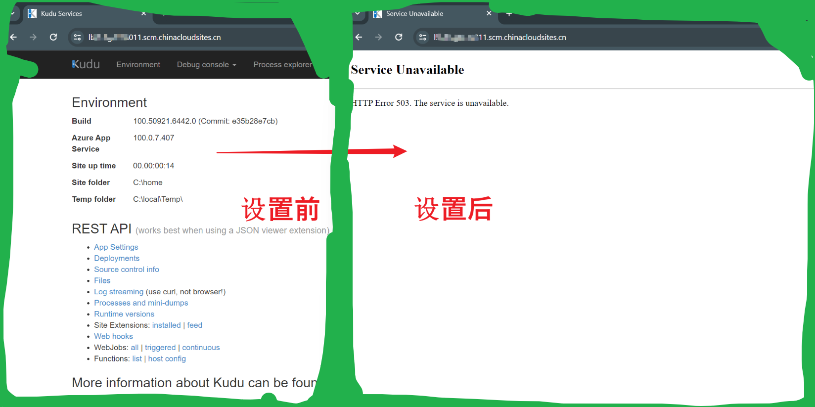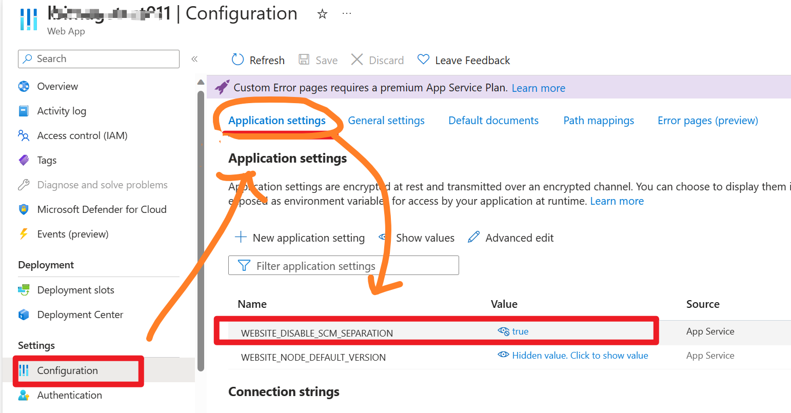 第一步:设置 WEBSITE_DISABLE_SCM_SEPARATION=true