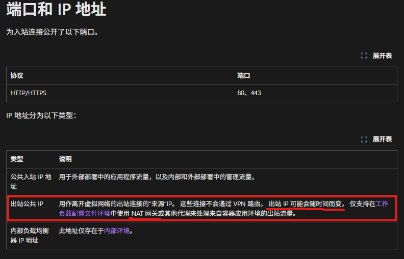 Container App的端口和IP地址:https://docs.azure.cn/zh-cn/container-apps/networking?tabs=workload-profiles-env%2Cazure-cli#ports-and-ip-addresses