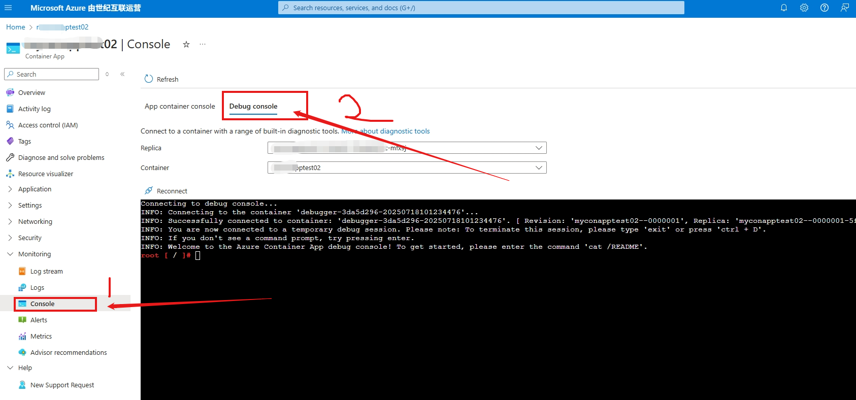 注意,也可以进入App Container Console,但有可能因为Image使用的基础镜像没有curl工具(需要自行安装)