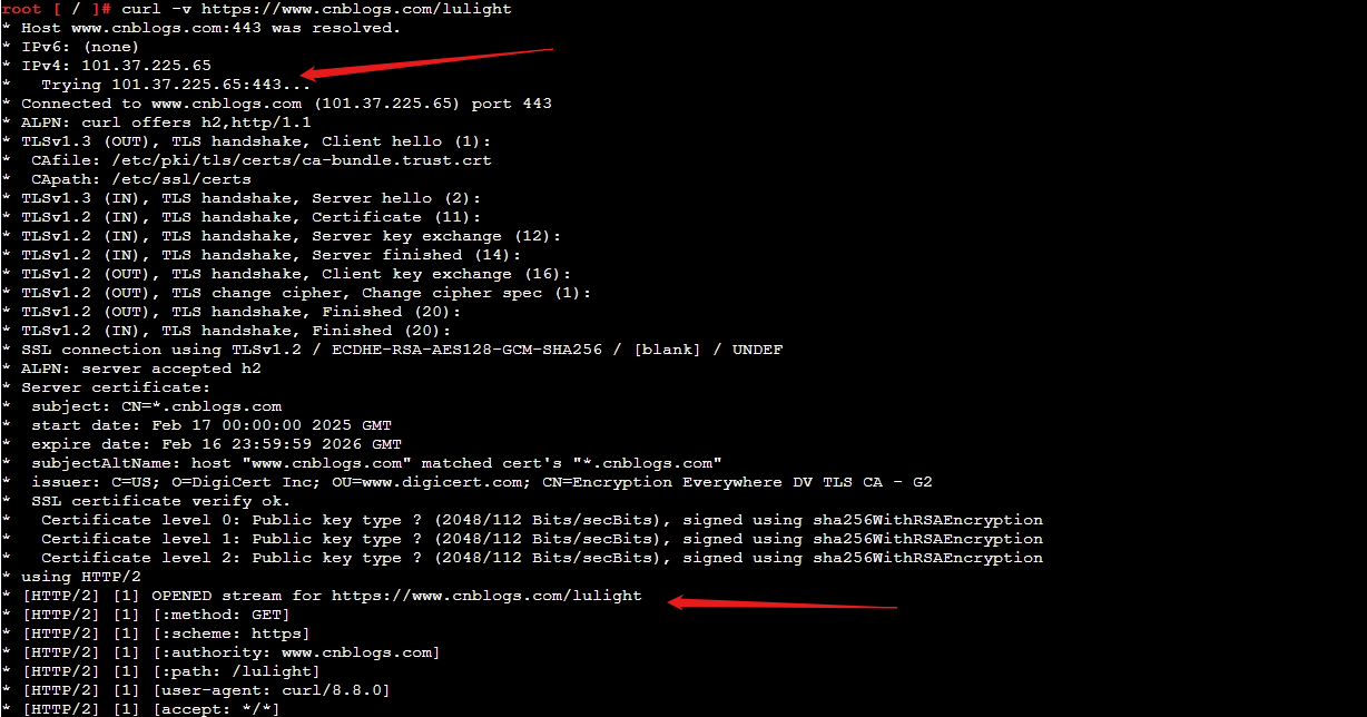 例如: curl -v https://www.cnblogs.com/lulight
