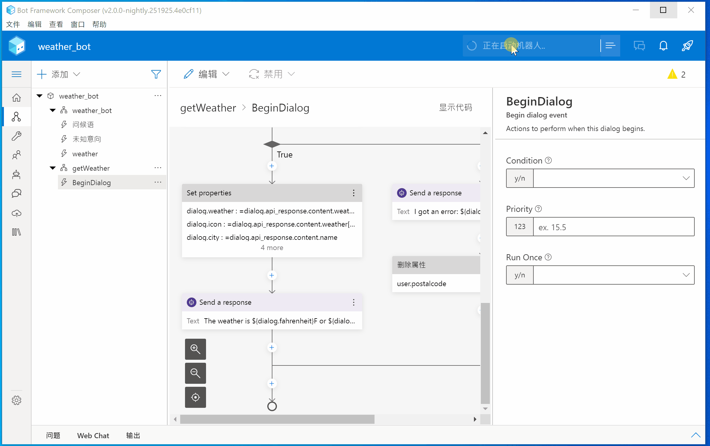 第一步:启动编辑器(Bot Composer) 并打开 weather_bot项目