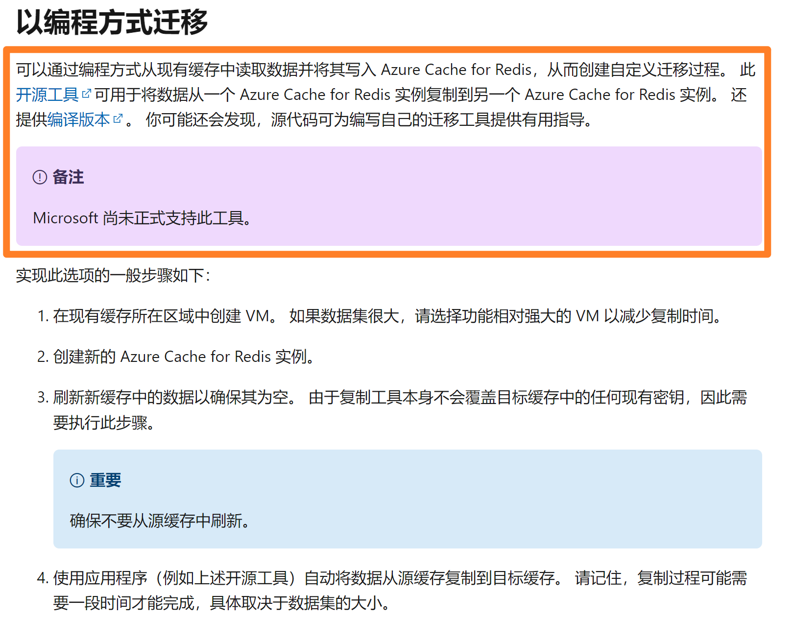 以编程方式迁移数据:需要自定义代码。https://docs.microsoft.com/zh-cn/azure/azure-cache-for-redis/cache-migration-guide#migrate-programmatically
