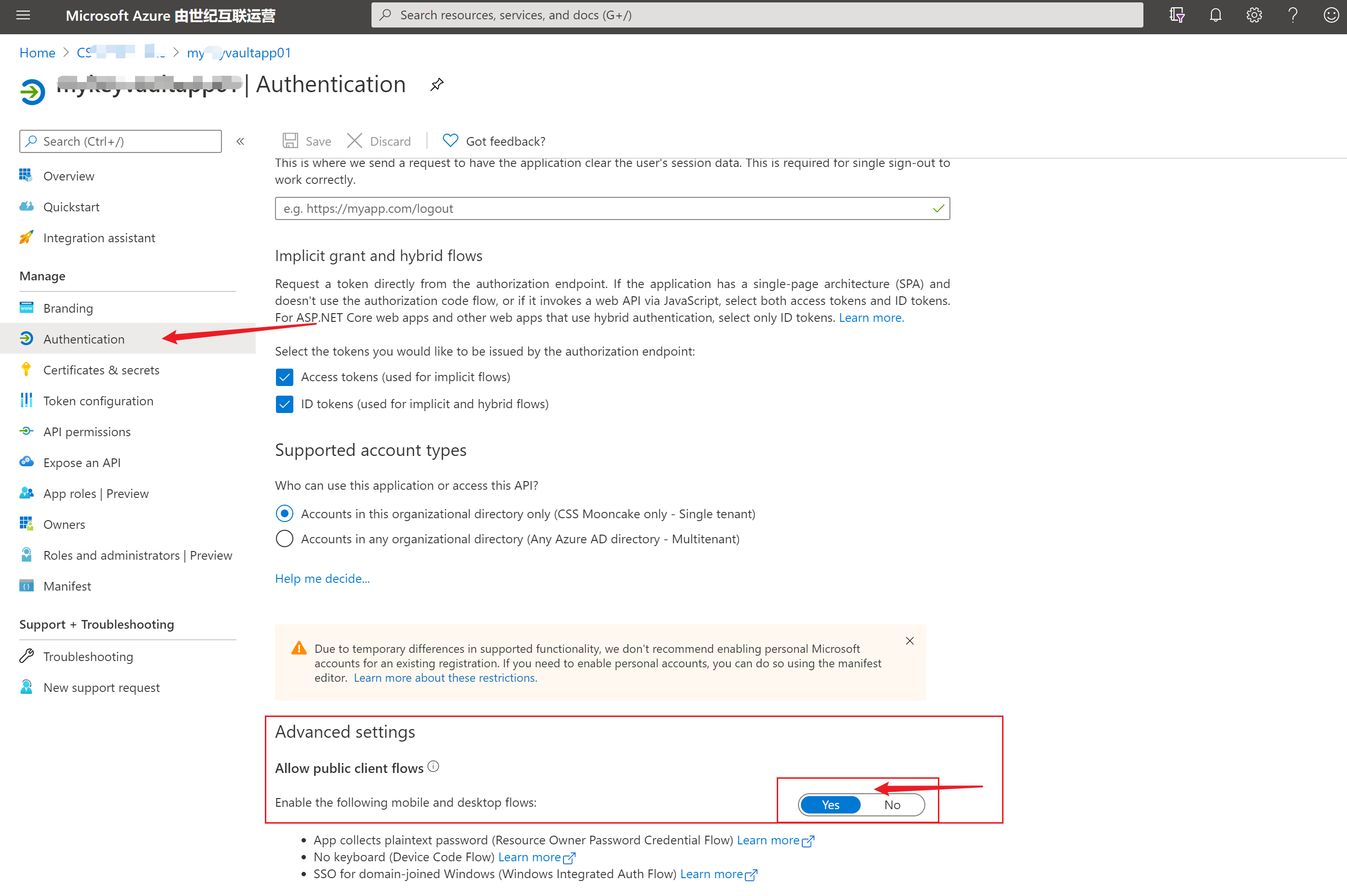 ** PS: 获取AAD中注册应用的相应配置值,可以参考博文**: