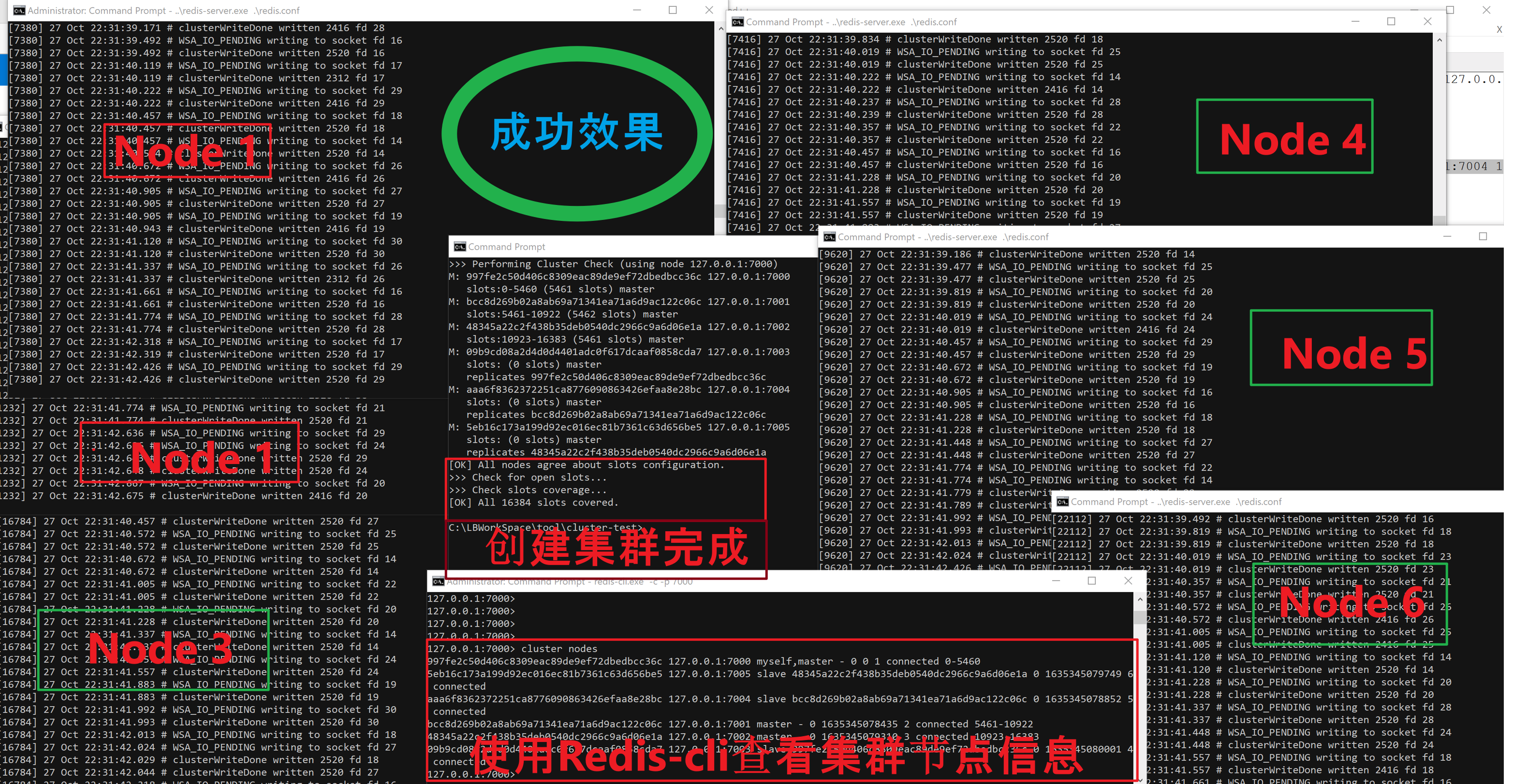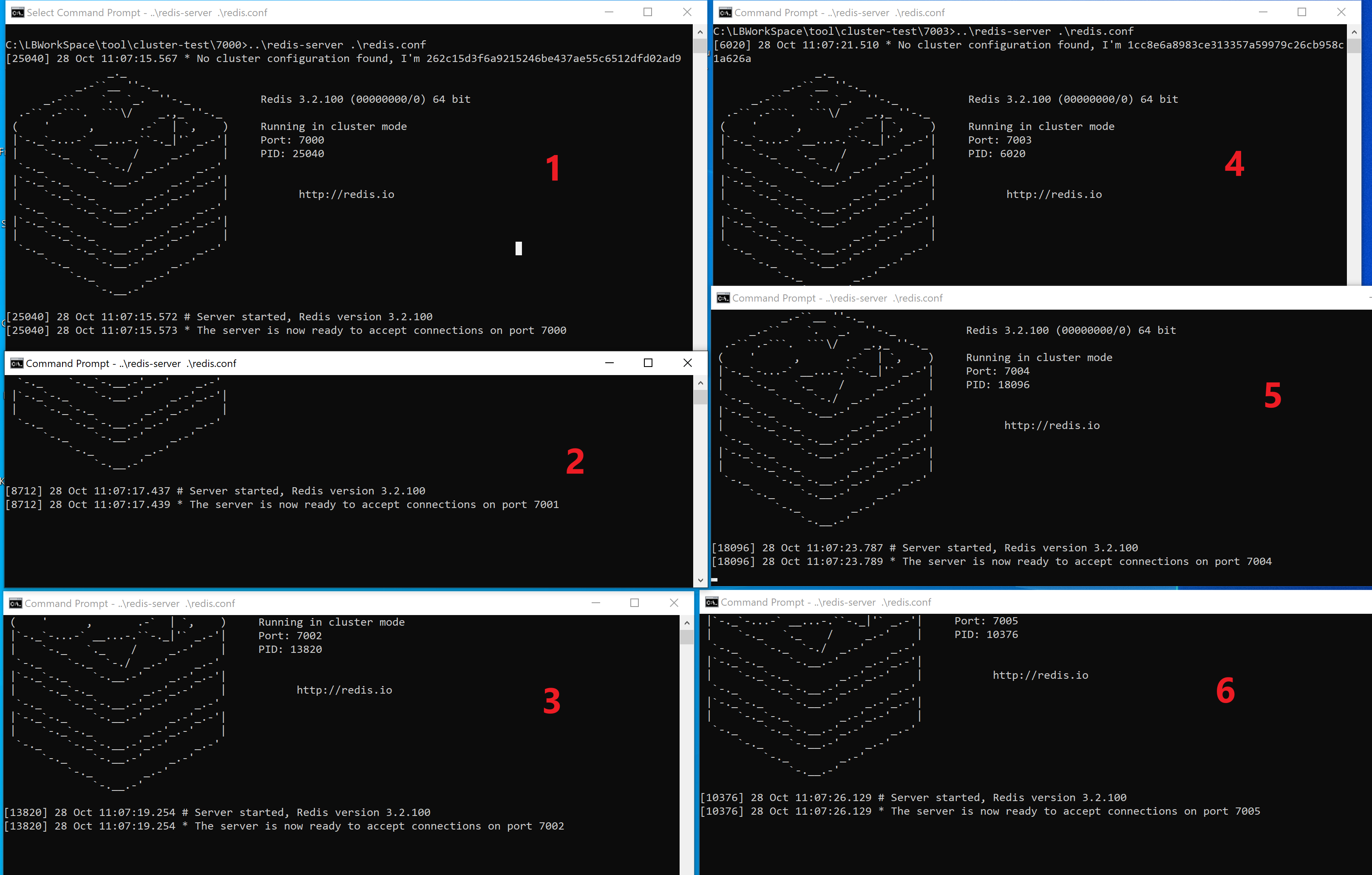 注:需要在6个CMD中对7000,7001,7002,7003,7004,7005 启动Reids Server