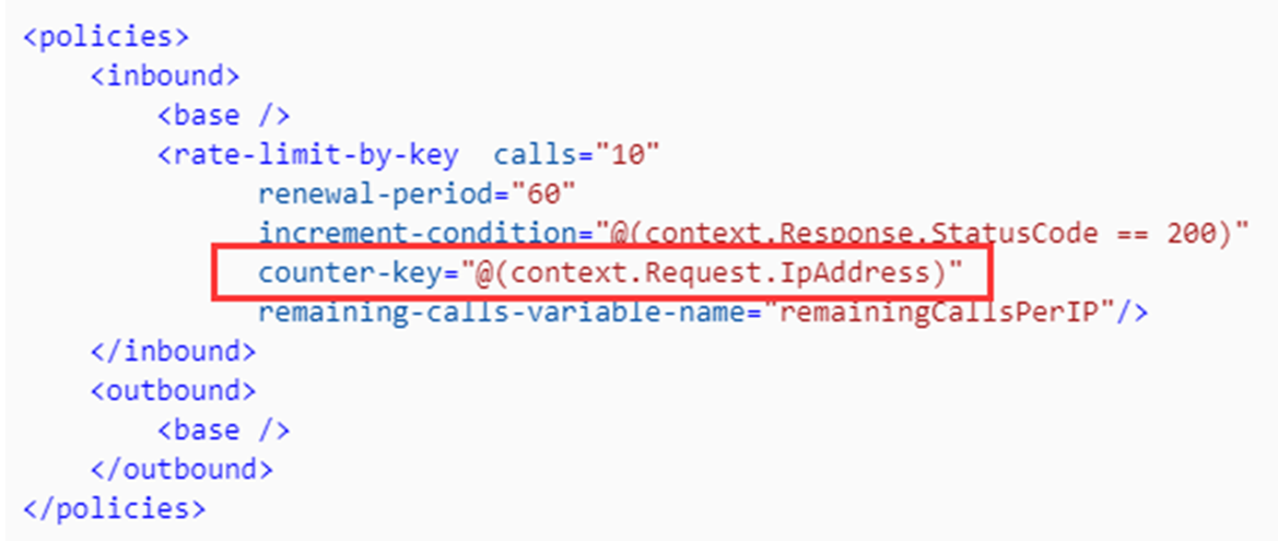APIM管理访问限制策略(按密钥限制调用速率) :https://docs.microsoft.com/zh-cn/azure/api-management/api-management-access-restriction-policies#limit-call-rate-by-key