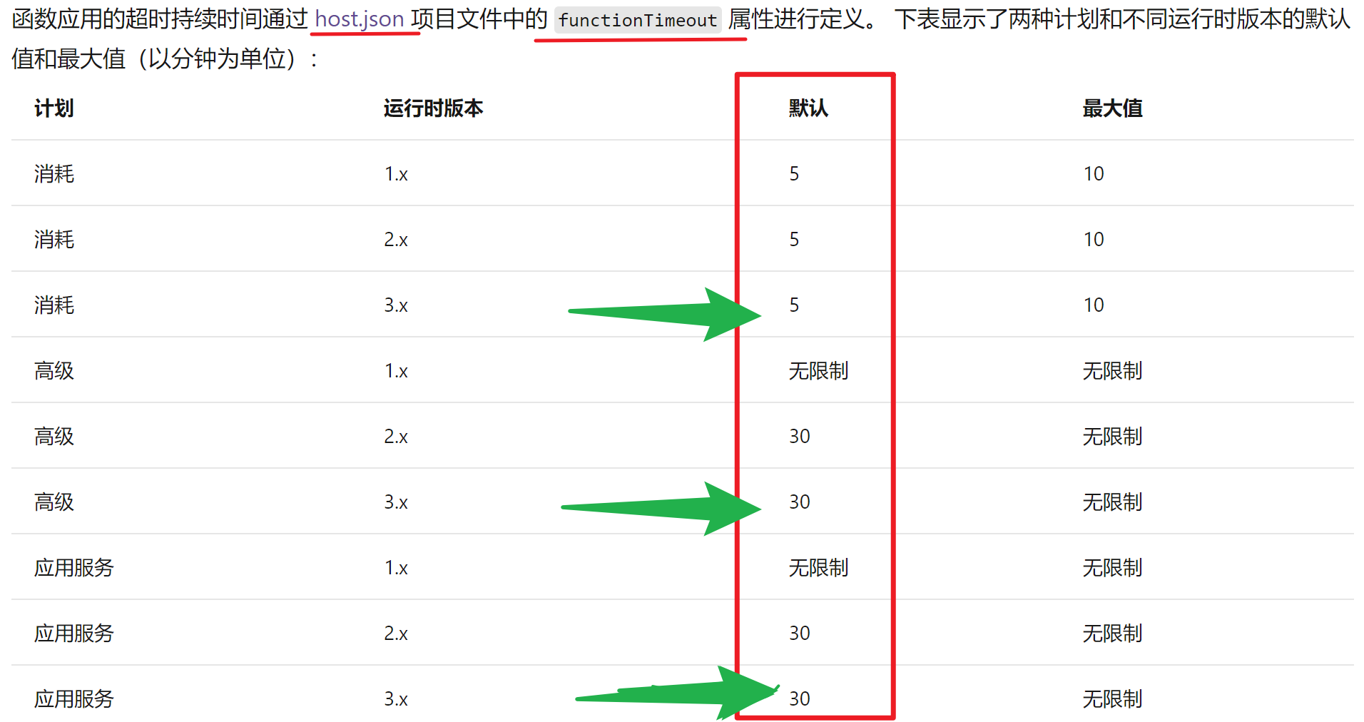 查阅官方文档,对函数应用超时持续时间有详细介绍:最新的3.X版本的默认值根据Function计划的类型不同而不同,默认的最少为5分钟,最大30分钟。消耗计划的Function最大可调整为10分钟,而其他两种无限制。