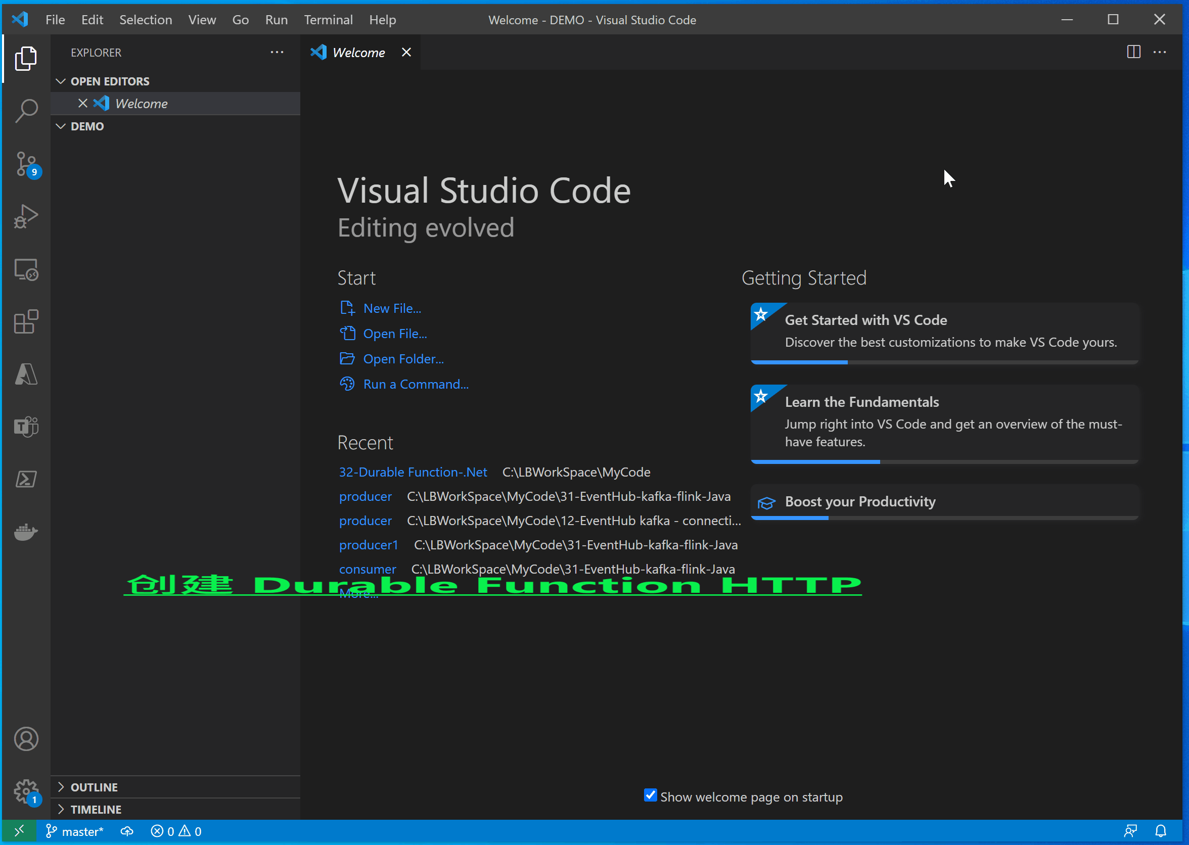 使用VS Code创建和发布 **Durable Function 异步模式Demo **到Azure演示