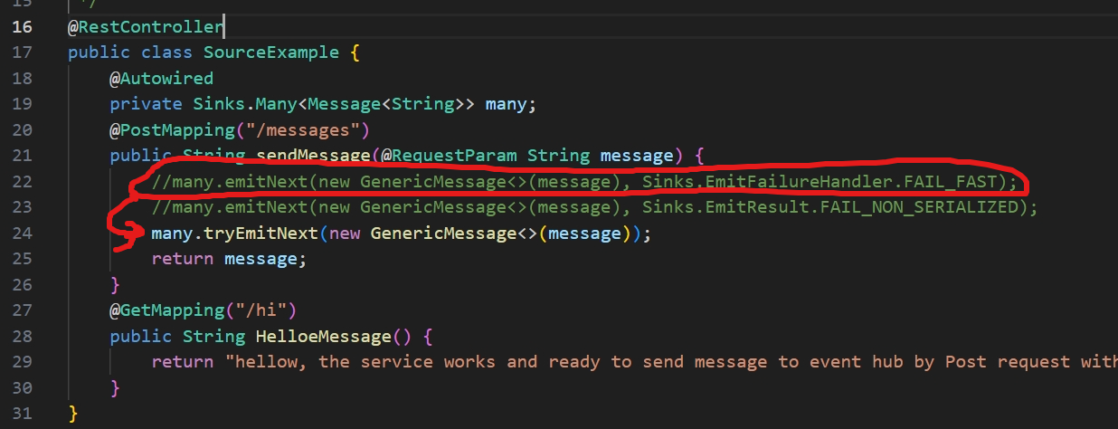 many.tryEmitNext(new GenericMessage<>(message));