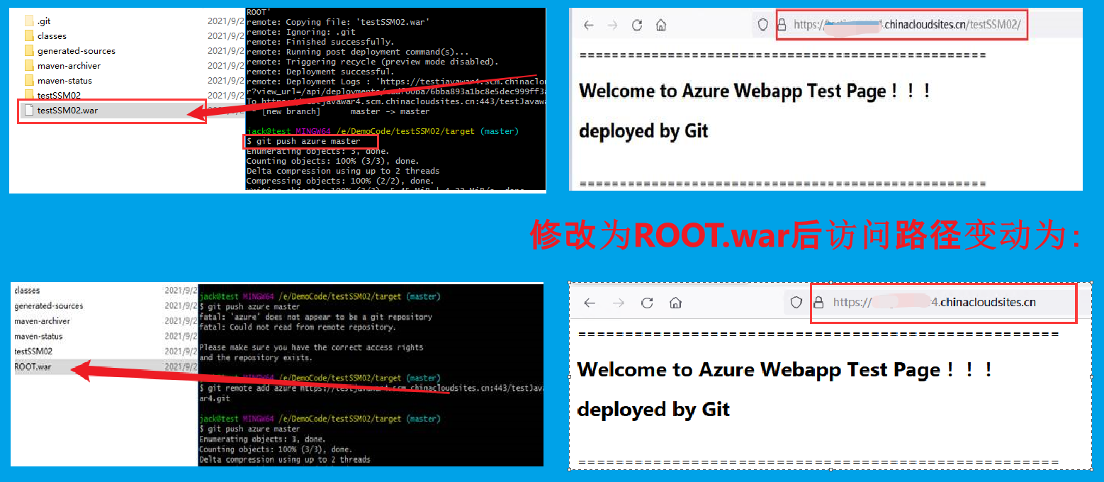 附录一: 部署War包时,使用ROOT.war为名,就可以使App Service的默认URL打开的项目为所部署war包的内容
