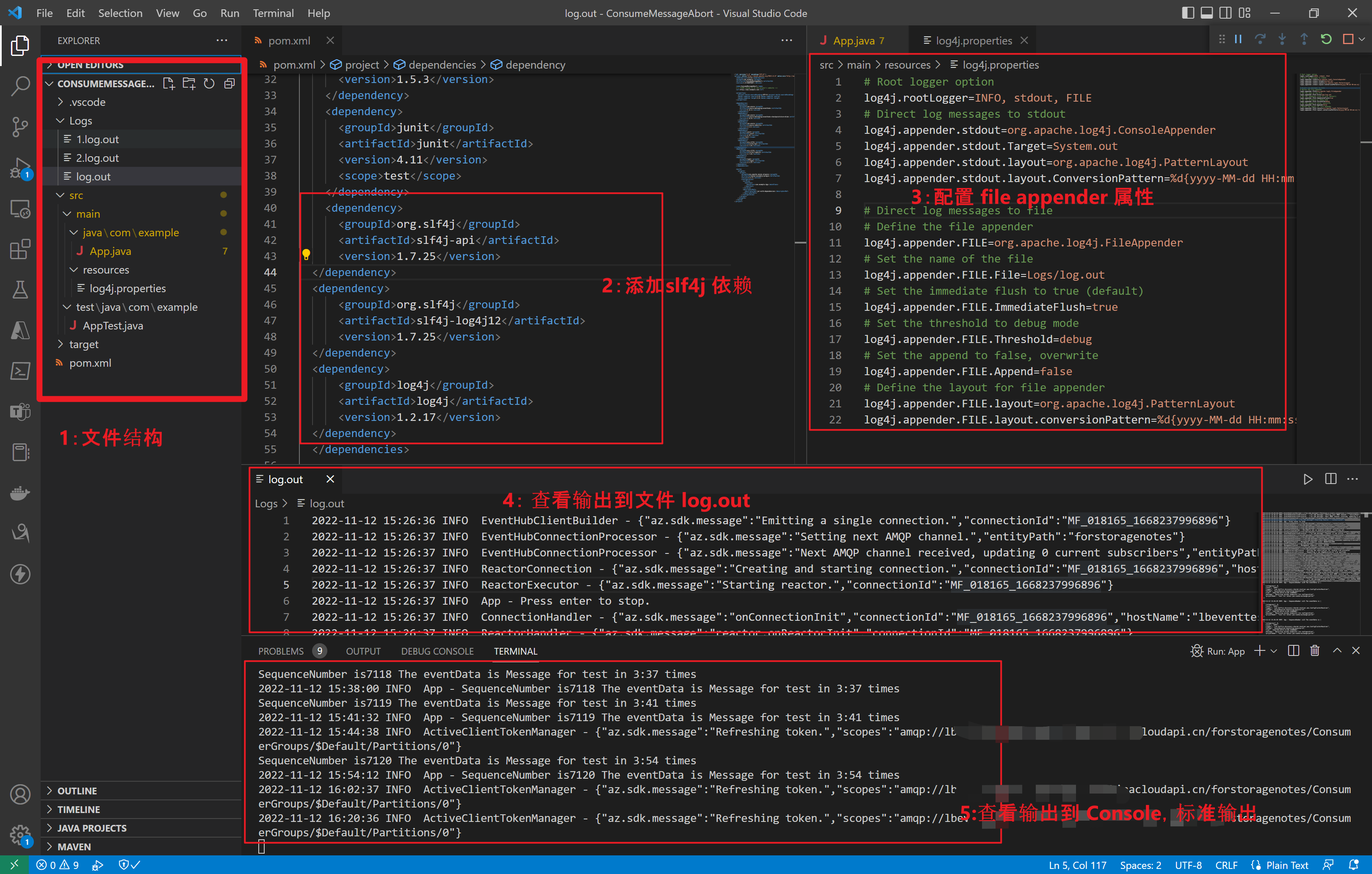 下面的步骤,就是展示如何添加SLF4J依赖,如何添加输出到文件,输出到Console的配置,最后查看输出结果。