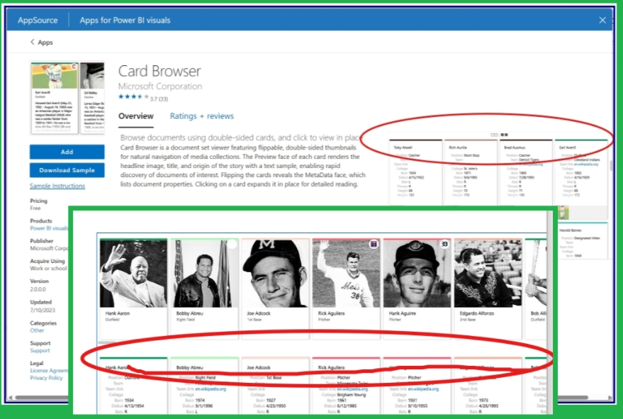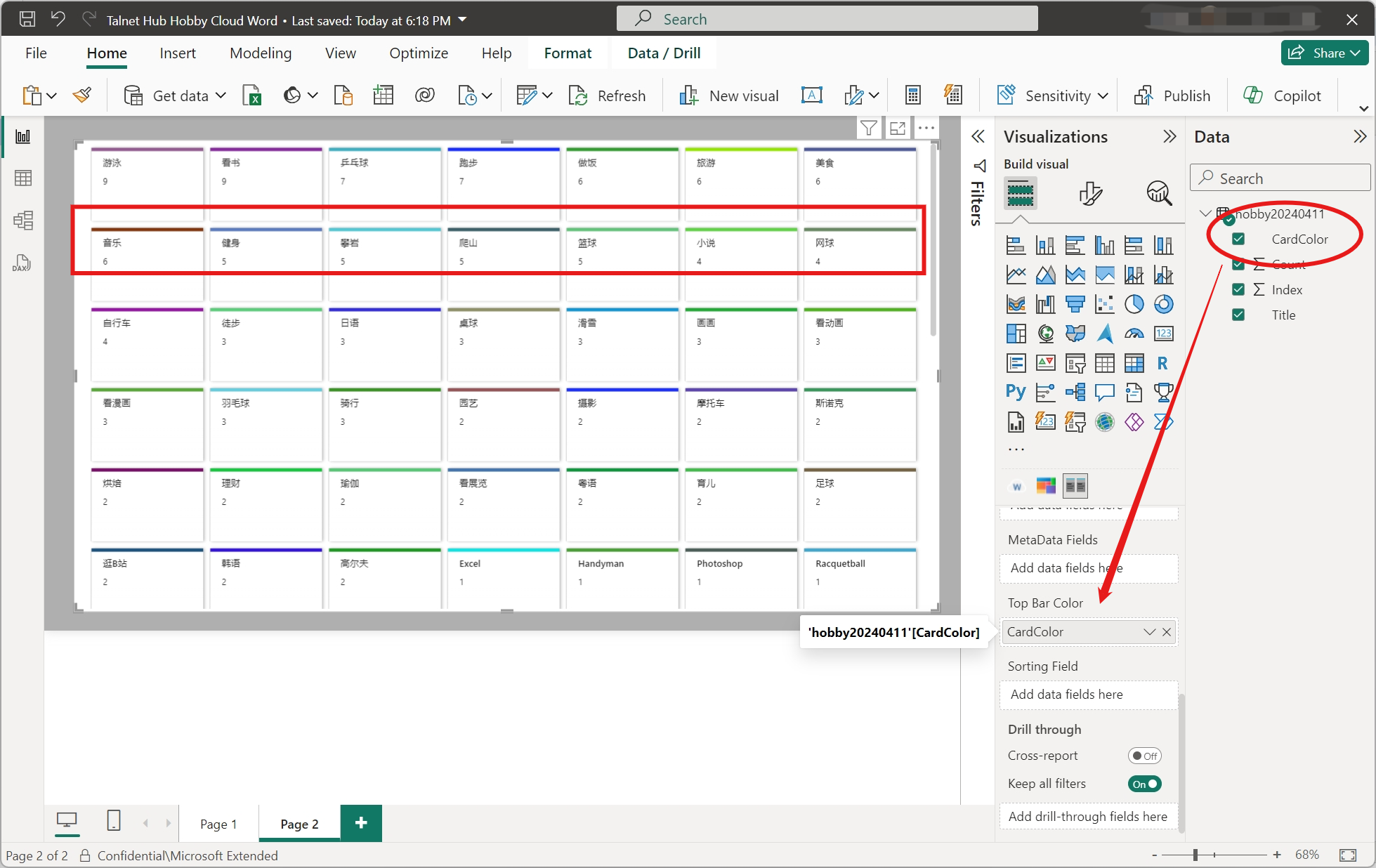 在使用Power BI Desktop做报表,用到了其中一个图标组件 (Card Browser),可以做出比较漂亮的图片和带颜色的卡片效果: