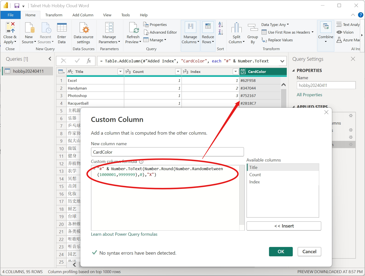 第二步:使用 Number.RandomBetween 生成随机数,并组合Number.ToText ,转换为十六进制