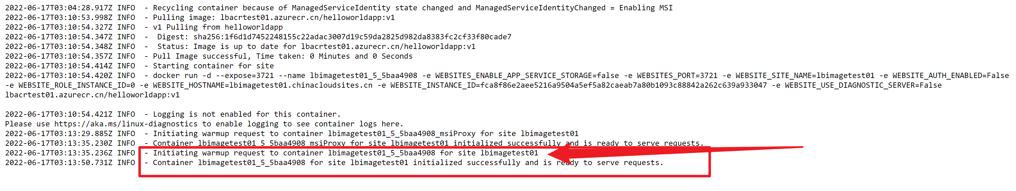 使用App Service for Linux/Container时,从Docker的日志中,我们可以看见有 warmup 行为,而此行为默认时间为230秒,如果超出了这个时间,就会导致Container启动失败。