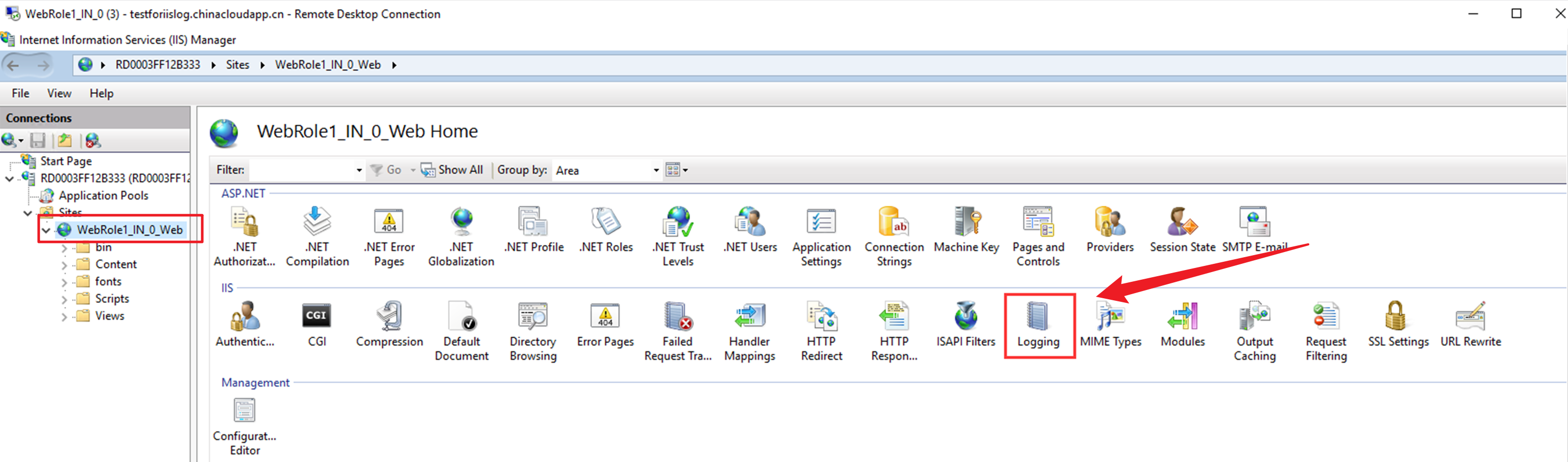 方案一(临时):Cloud Service WebRole是Host在IIS中,所以可以通过对IIS的Logging设置就可以(RDP到VM中修改)